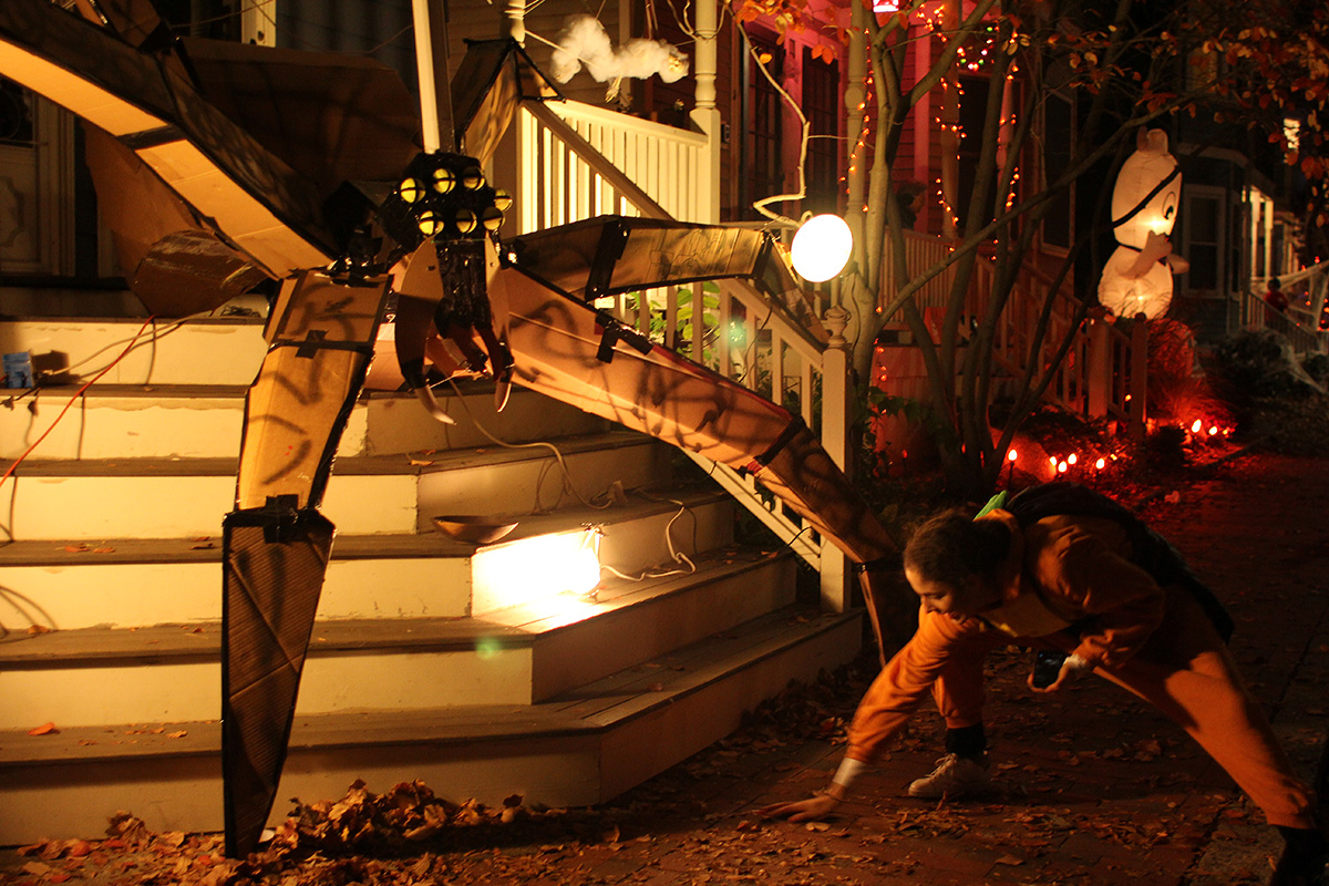 after dinner i returned to cambridge. temperature was in the upper 50's early, but by evening had dropped into the low 40's. i made sure i wasn't traveling too fast, and kept my eyes open for trick-or-treaters in the streets. i'd catch glimpses of people in costumes, children and adults, walking around outside. i didn't get back until 7:20pm, but by that point bruce and jack were already out. i went inside my house to drop off my things and switch to my 28mm f/1.8 night lens. i was disappointed that freddy wasn't home yet, i think he would've found the halloween celebration interesting.