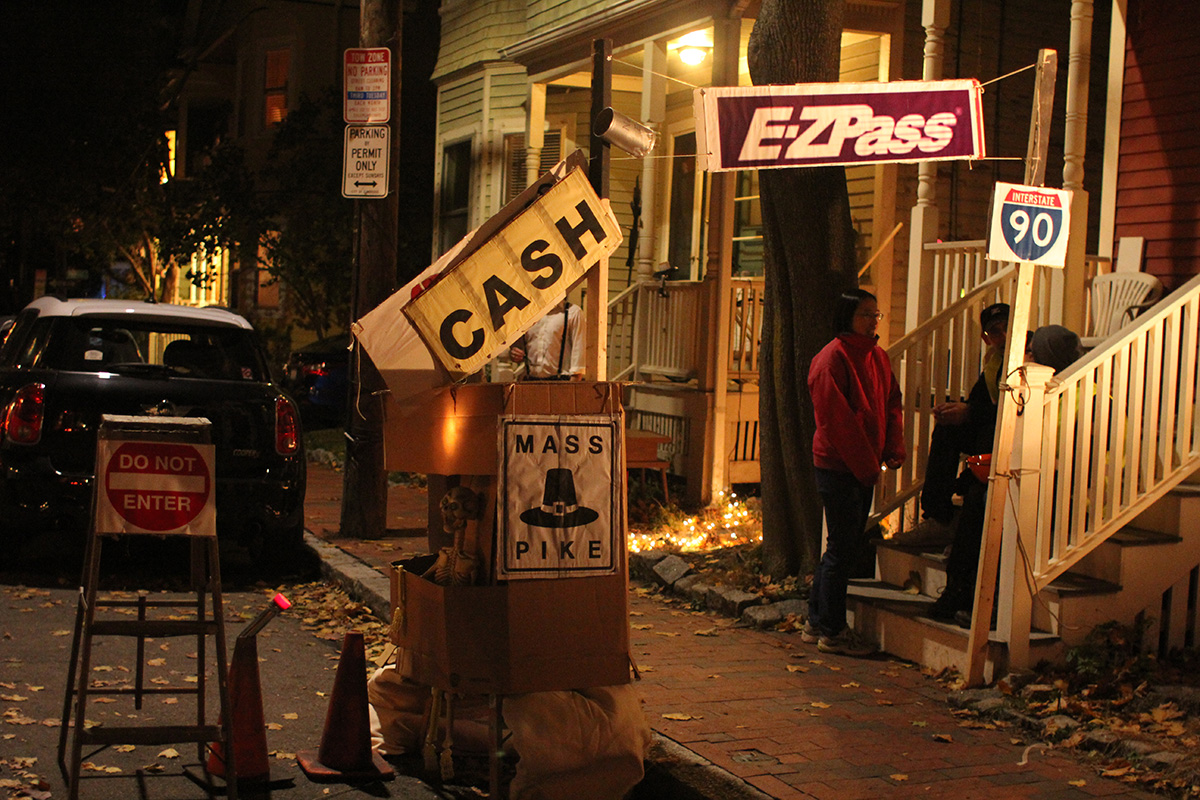 i bumped into bruce and jack on crescent street. they were soon to leave, while i walked back those streets for an encore. on eustis i bumped into our mailman handing out candy. he joked that he actually lived here, but later told me he was just visiting a friend (mailman lives in somerville). i almost didn't recognize him without his postal carrier outfit on.
