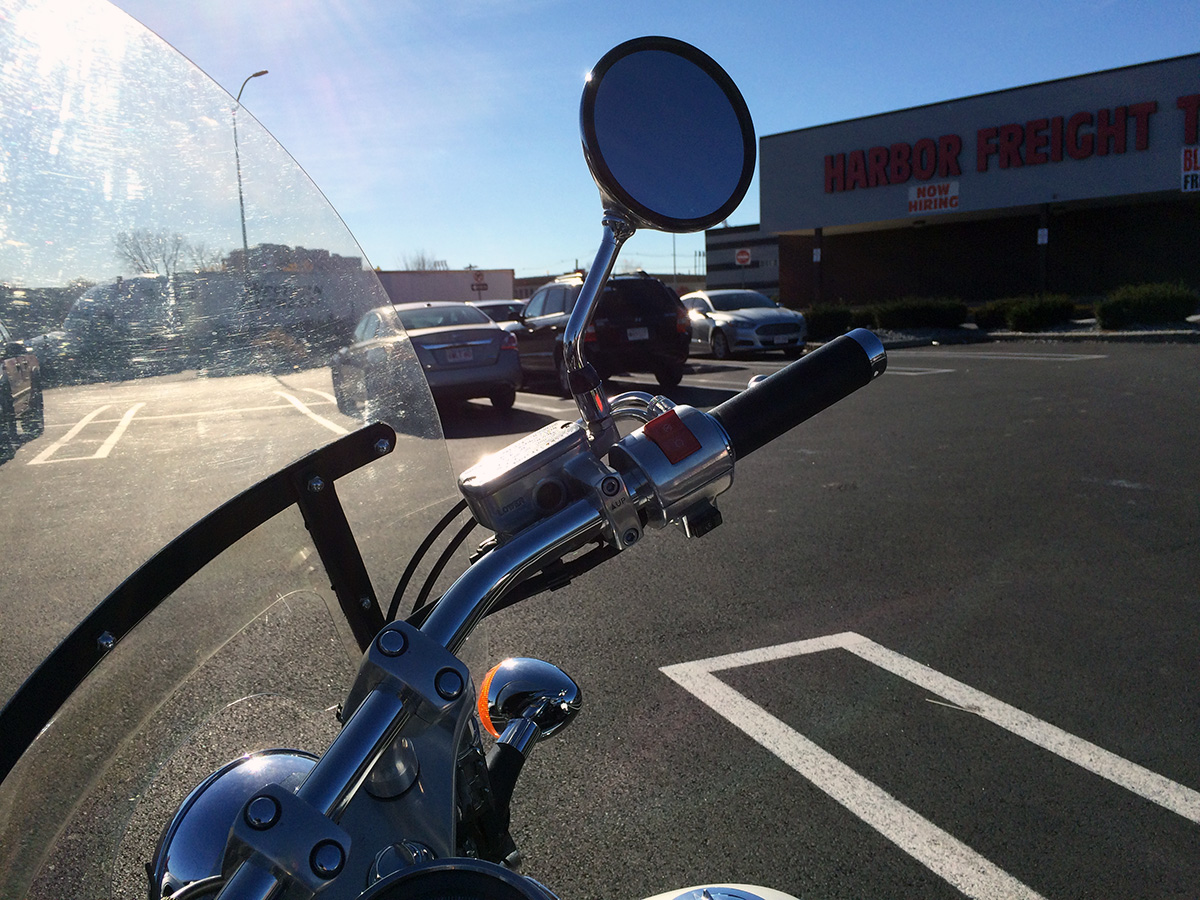 i took the motorcycle to ocean state job lot in the early afternoon to pick up some thermostat upgrading equipment: a soldering iron ($3.99), a box of twist-on wire nuts ($3.99 with coupon), and a free complimentary multimeter ($5.99 otherwise). it was a chilly day with temperature in the upper 40's but it felt nice in the sun.