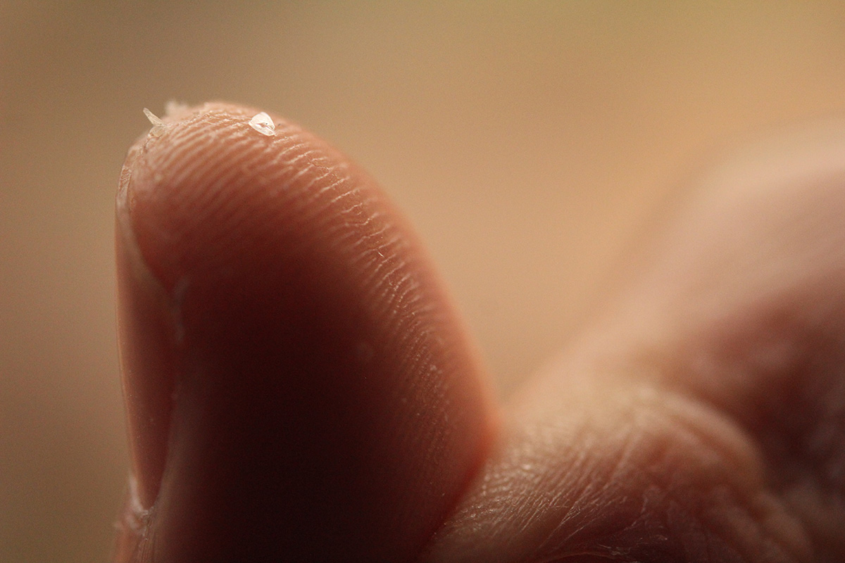 i put the tip of the x-acto blade into the tiny hole at the bottom of my foot. i didn't think i touched anything yet but was surprised to see what looked to be a small sliver of glass coming out of the wound. i extracted it with my fingertips, just a tiny shard of glass, but apparently enough to cause all that pain. i pressed down on the puncture again and the pain was gone. the glass splinter had been successfully removed!