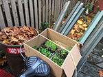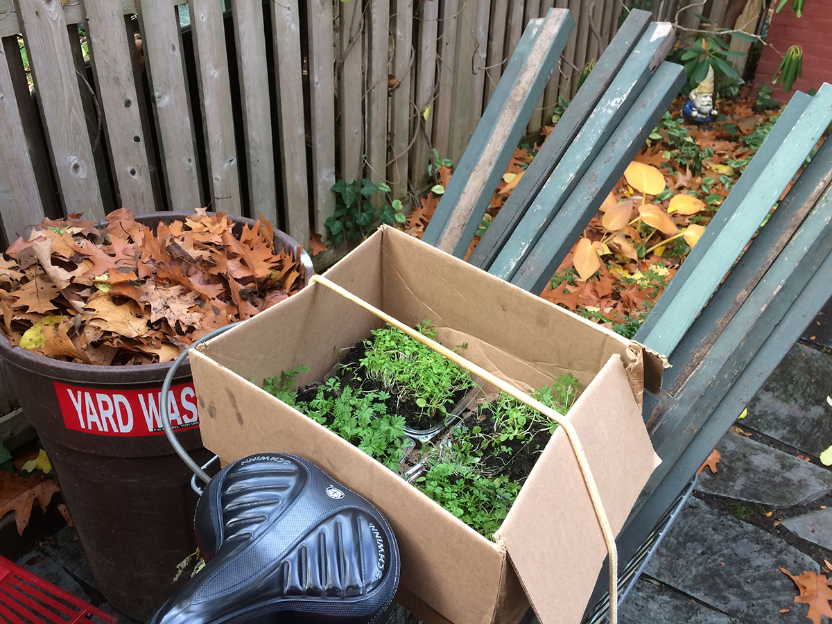 with my foot back to normal, i was out in the backyard raking the leaves. i couldn't find any garden refuse bags in the basement so i only managed to collect a single trash bin of mostly oak leaves.