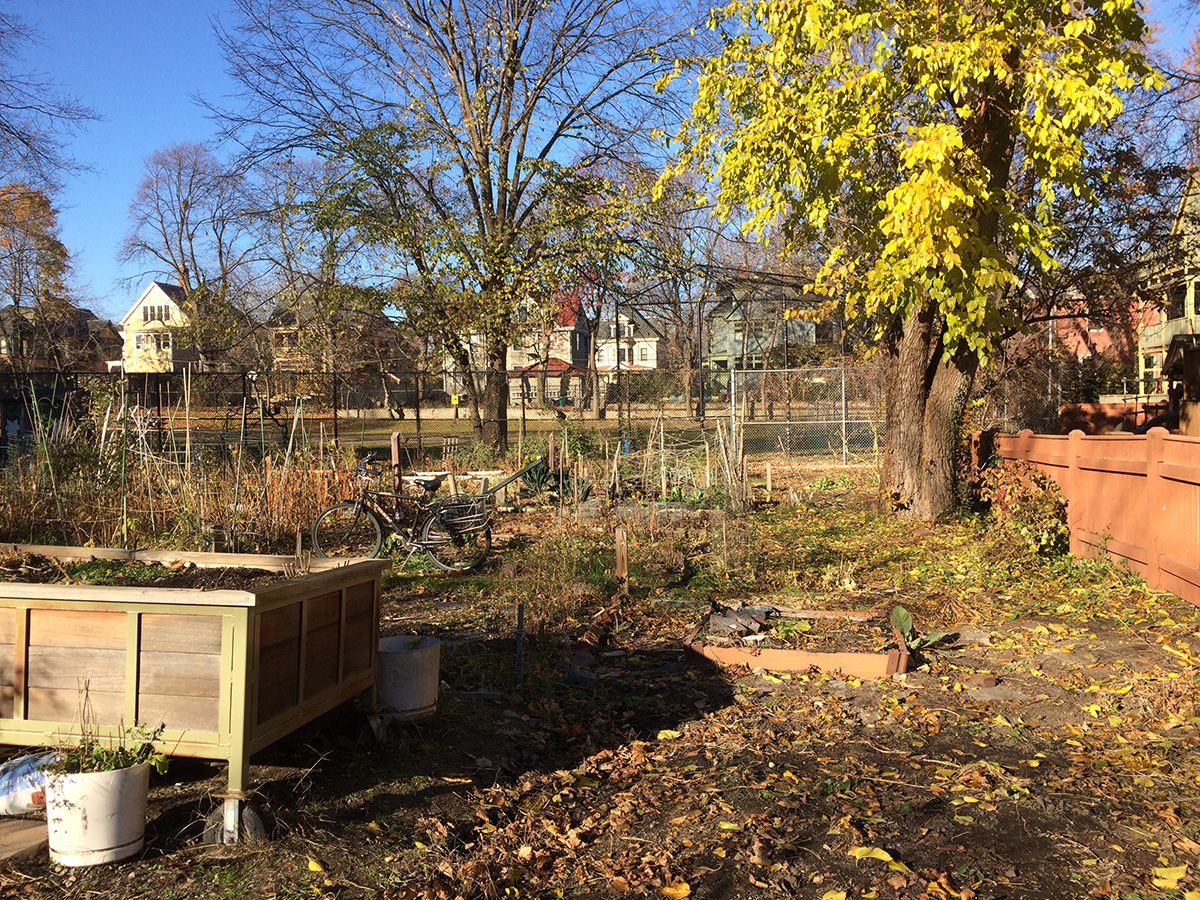 i went to the community garden to collect more rocks. it won't be long now, in a few more weeks, all of this - at least the plots on the right side of the garden - will all be torn up to make a new path into the park. i was surprised to find a note in the latest garden e-mail that my plot was already designated as abandoned and that they needed help in moving any remaining bricks to the other side of the garden by december 1st. i was afraid some good samaritan had already done that but happy to see my plot just the way i left it last time. i moved some good bricks and rocks into my bike baskets, and moved a few broken bricks to the side of the garden. i need to come back one more time to collect the final rocks.