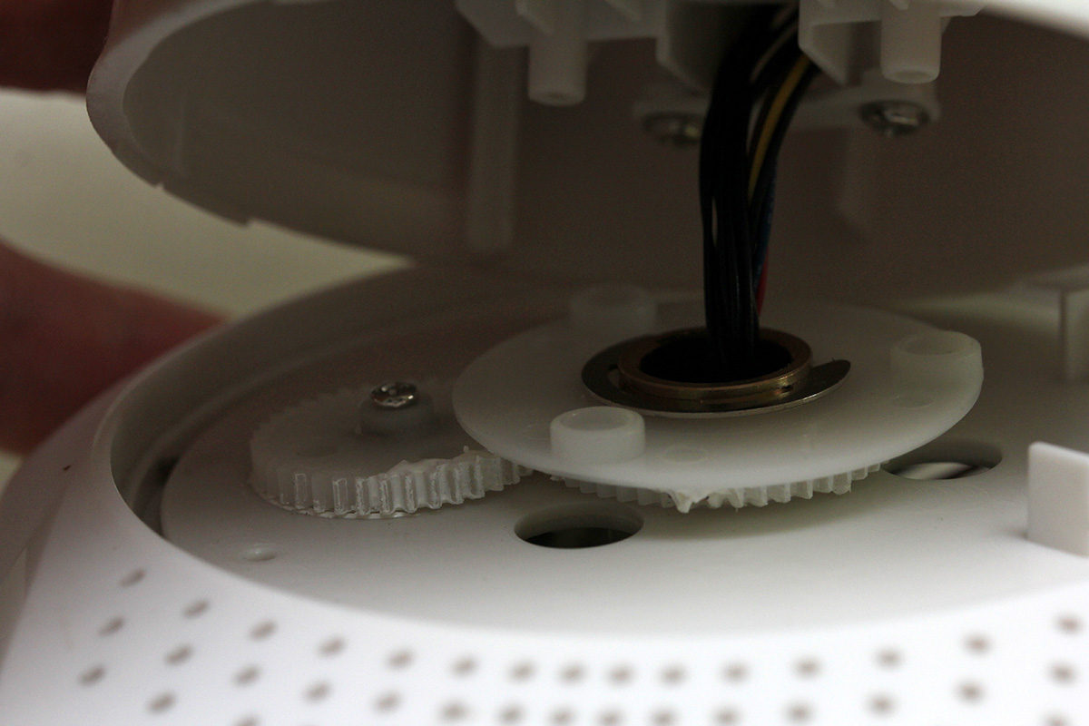 i'd brought home the old foscam FI8910W. originally i was just going to leave it at the cafe and put it in the basement, but with it's inability to pan horizontal left and right (just vertically up and down), it wasn't very useful. i brought it back to see if i could fix it somehow. that involved opening up the camera, which wasn't very hard, but some screws were hidden behind stickers, and the screws were kind of cheap and i think i stripped some of them while trying to remove them. i got as far seeing the gearing for the panning action. everything inside looked pristine, so it wasn't a clogging problem. at this point it's either one of two things: either the panning control on the circuit board is fried (i didn't see any scorch marks), or there's something wrong with the W-24BYJ 5V DC stepper motor. stepper motors are more reliable than regular motors, so it's a mystery why it stopped working. but if the stepper motor needs to be replaced, it's a relatively cheap part, with prices $1-$5 on ebay.