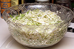 to the shredded cabbage i added 1 tbsp of sea salt and 1 tbsp of caraway seeds. i never tried caraway seeds before. they're like a mix between cumin seeds and fennel seeds, with a minty anise flavor. i mixed everything by hand and let it sit. the recipe said to wait only 10 minutes but i ended up waiting an hour because i was making the chicken corn chowder.