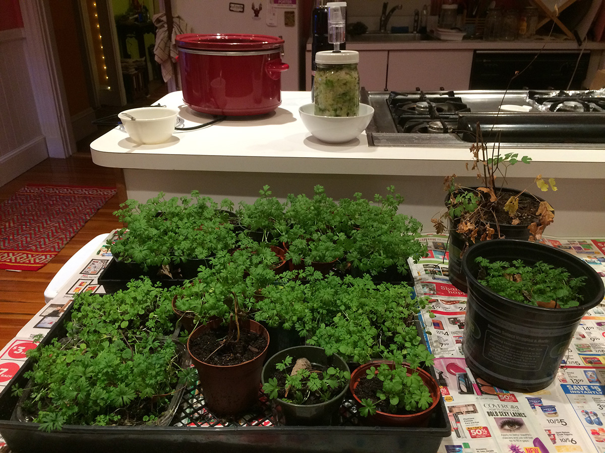 after dinner i peddled back home. the temperature was already dropping into the 20's, but i felt fine. i put the bike away in the basement, figuring i wouldn't be using it for the next few days, with the bitterly cold weather following by snow and rain over the weekend. inside the house, i brought in some garden perennials sitting out on my backyard deck. they may be hardy winter perennials, but i didn't want to take the chance and have them freeze to death outside. i'll put them back out once the cold snap is over.