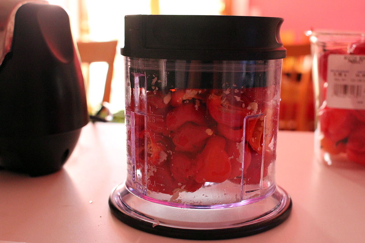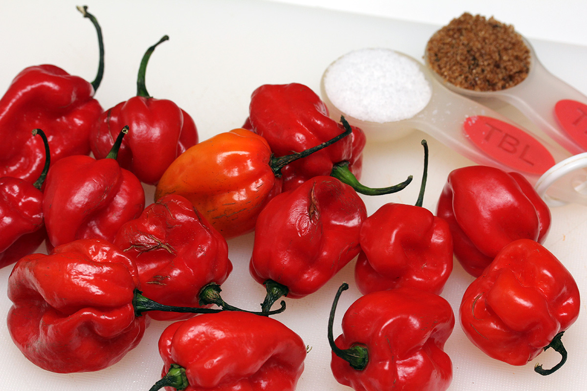 6 oz. scotch bonnet peppers (14) 1 head of garlic (10 cloves) 1 tbsp fine sea salt 1/4 cup of chinese baijiu 1 tbsp brown sugar (optional) 1 pint jar food processor |