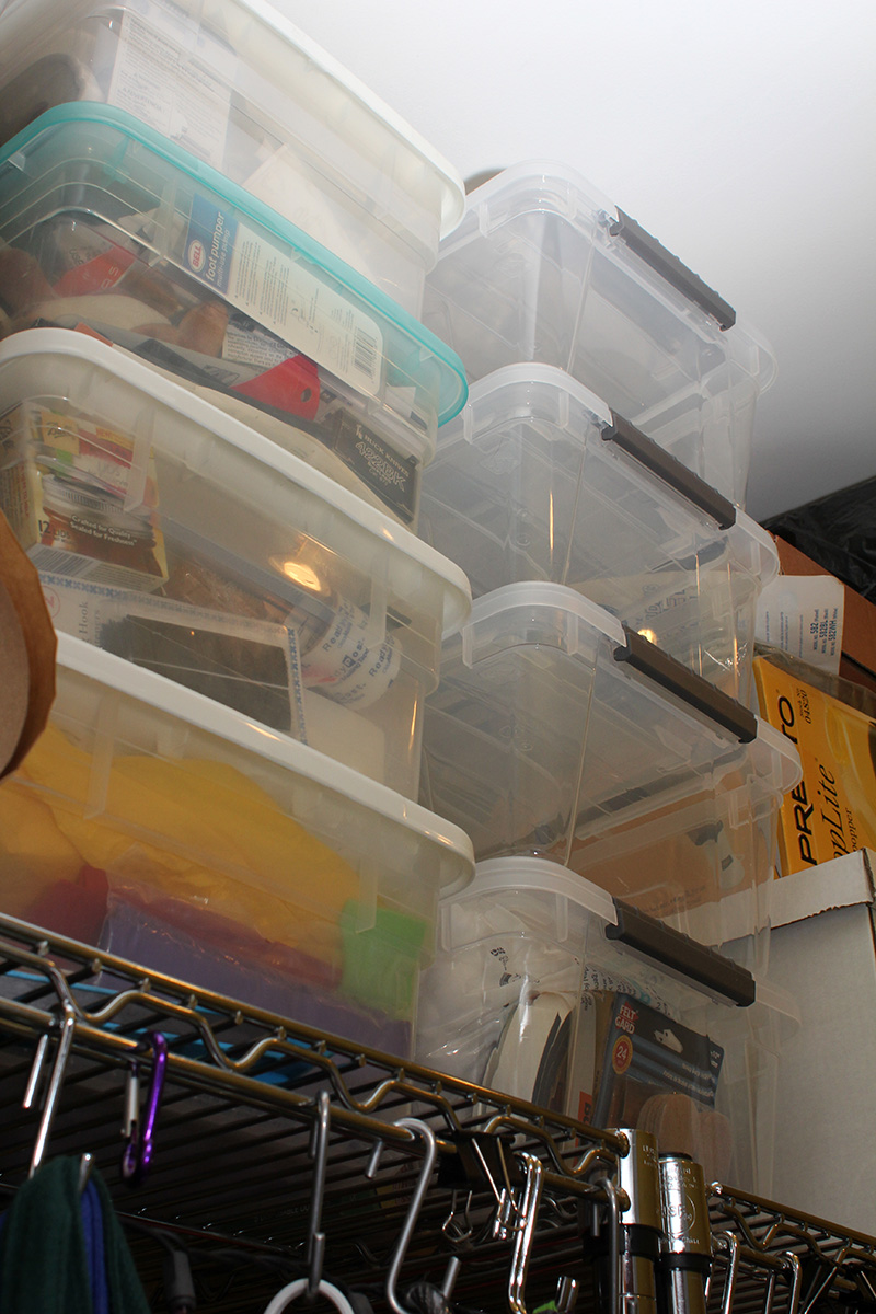 i put my new storage bins to good use, 4 in the closet, 2 in the kitchen. i switched to plastic bins every since i had a mice problem many years ago. since then, my house has been mouse free. i'll need to take some time to reorganize my closet and find things to fill these new bins with.