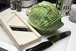 in the late evening i went ahead and prepared the head of cabbage i got from market basket. this will be my second jar of sauerkraut, having not even tasted the first jar yet. but i had that spare fermenting jar and i wanted to put it to use instead of having it just sit there. besides, cabbage is cheap, and sauerkraut is easy to make. i wanted to cut the cabbage with a mandolin slicer this time, but none of the attachments give me a satisfactory cut, shredded the cabbage to cole slaw texture instead of sauerkraut texture. i ended up shredded the cabbage by hand with a knife.
