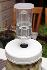 fearing the possibility of mold in my sauerkraut, i opened up my jar late last night to check the progress. what i thought was mold was either dried cabbage or dried brine. i then cleaned up the airlock and reassembled everything. since then, i haven't really noticed any sign of fermentation. there's some spittle on the spout, but not enough CO2 is being produced to push up the floating bell anymore. this is day 7, and i wonder if this is a sign that the sauerkraut is done fermenting and ready to eat now.