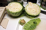 i didn't know the size of the cabbage and forgot to weigh it with my fancy new food scale before i chopped it all up. but i was able to deduce the weight afterwards, my measuring the shredded cabbage and bowl (57.81 oz.), and then later just subtracting the bowl weight (20.07 oz.). the result is 37.74 oz. which is 2.36 lbs. bear in mind i removed the cabbage core and added a tbsp of salt and caraway seeds, i figured the cabbage i got was 2.5 lbs., about the same size as the one i got last week.