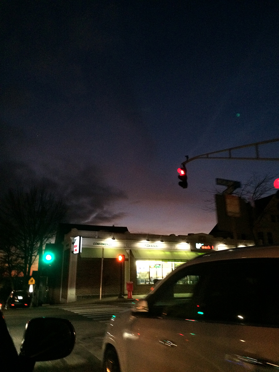there was a little bit of traffic on the way back, but just the typical amount. we chased the fading sunset all the way to cambridge where they dropped me off.