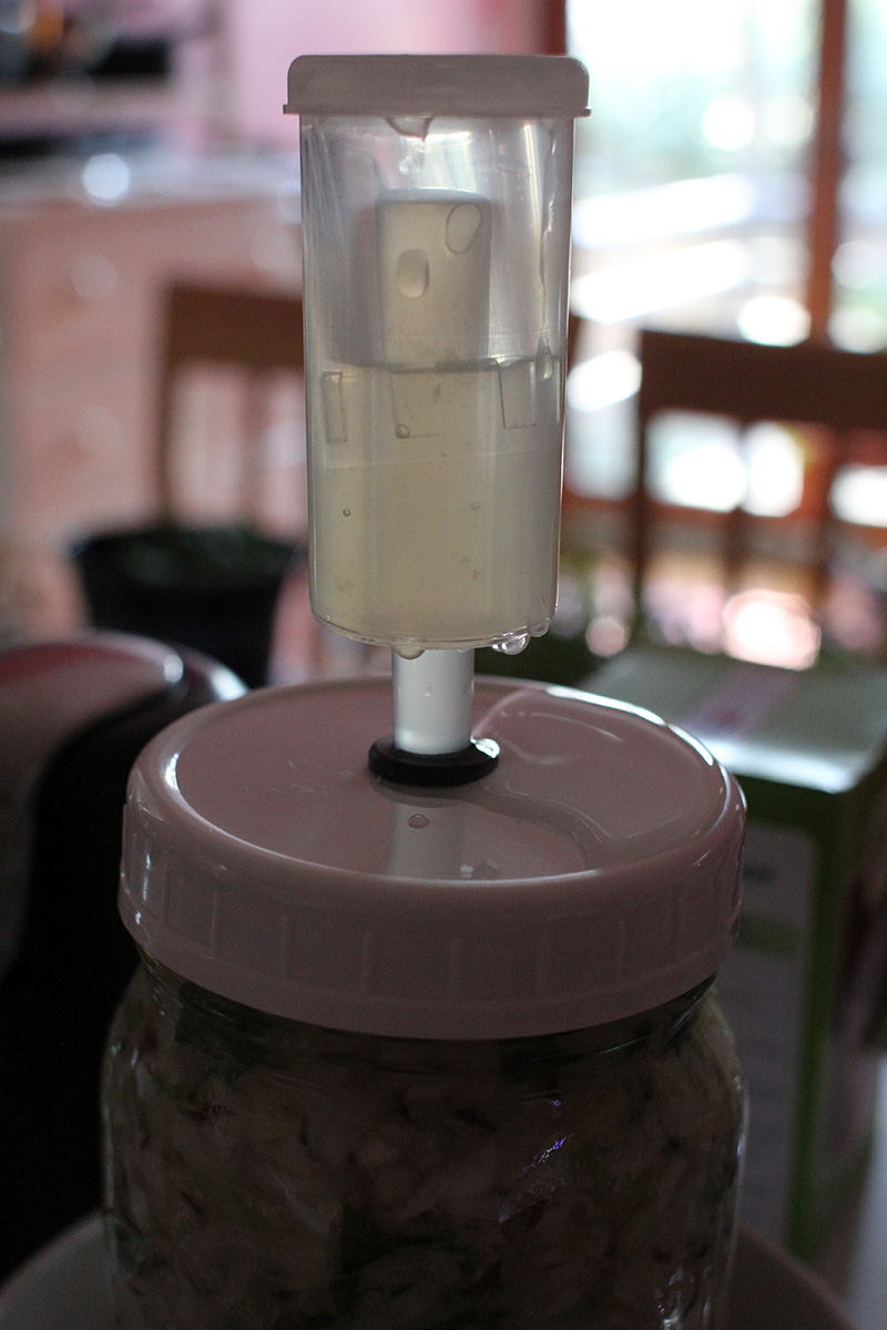 out of curiosity, i tried the sauerkraut i made from the first jar. the one thing i noticed immediately was how dry it was. that's not surprising, given how much liquids i poured out the first few days it was fermenting. i now see this was a mistake. any cabbage juice removed would not then magically appear. i began noticing this a few days after the initial ferment, when i could see rather large air pockets in the sauerkraut. i thought this was normal, figured the air pockets were just pockets of active carbon dioxide production. but since yesterday there really hasn't been any fermentation activity.