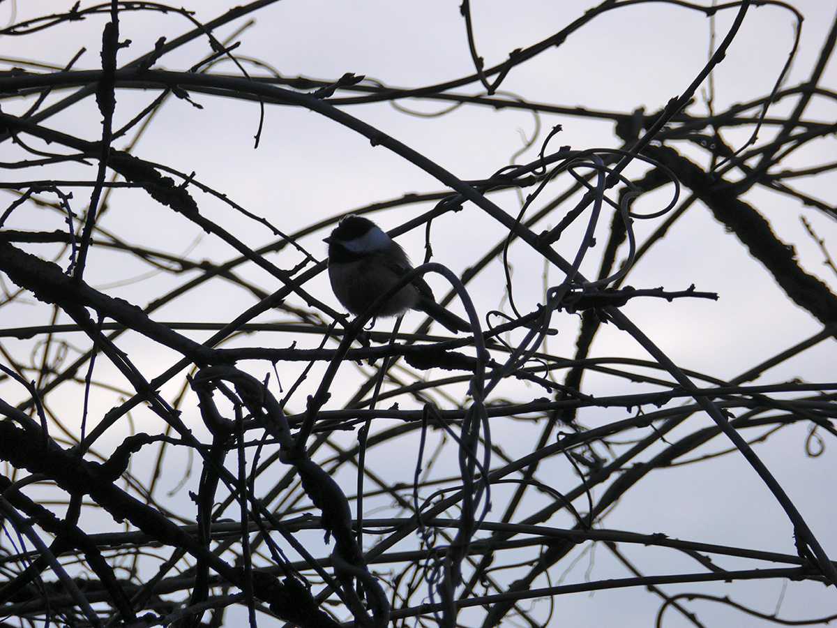 today marks the winter solstice, the official start of winter, though some would argue winter probably began weeks ago. i set up a 2 seconds/frame timelapse in my parents' backyard, hoping to capture a glorious sunset that never come. chickadees fed at the globe feeder while i saw a downy woodpecker eating from the suet feeder.