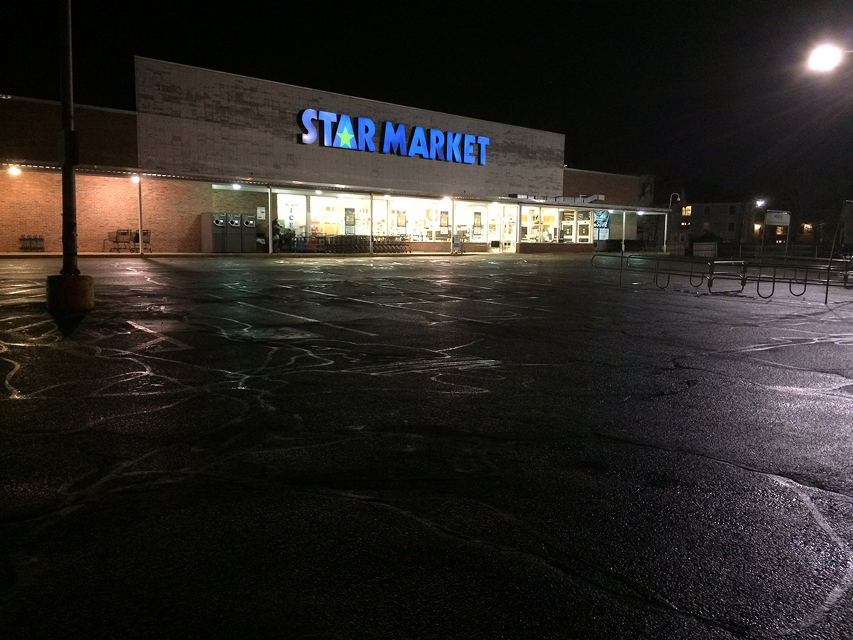 when i got back home i went across the street to my local star market to buy some more asparagus that was on sale. even when i saw the empty parking lot i didn't get the hint until i was finally at the store and looked inside and saw it was devoid of humans. it was almost 8pm, but they probably closed early today, like 6pm. i returned home, carefully walking as there was a slick invisible layer of ice on the sidewalks.
