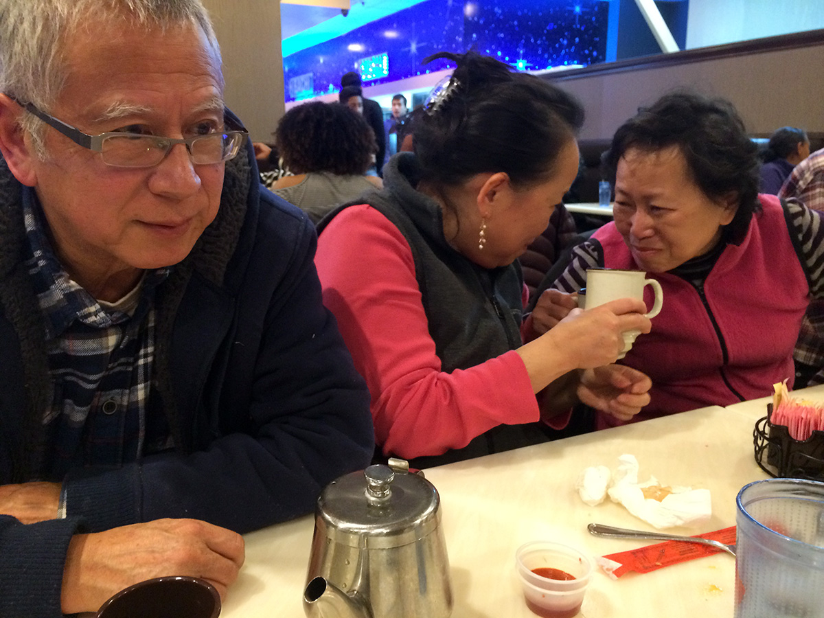 it was also my mother's birthday, which was the real reason we came out to eat, but we didn't want my sister's godmother to feel self-conscious, so we didn't mention it, instead saying my aunt just wanted to treat for helping her move to her new apartment. while my sister's godmother was in the bathroom, my aunt secretly toasted my mother's birthday.