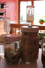 afterwards we went next door to the dollar tree. there's one near my house, but this one is about 3x the size, if not larger. i recognized the cashier from the somerville store, maybe she works both places, or maybe she just relocated. i found two large puck-shaped glass votive candle holders that i'll use as fermentation weights.