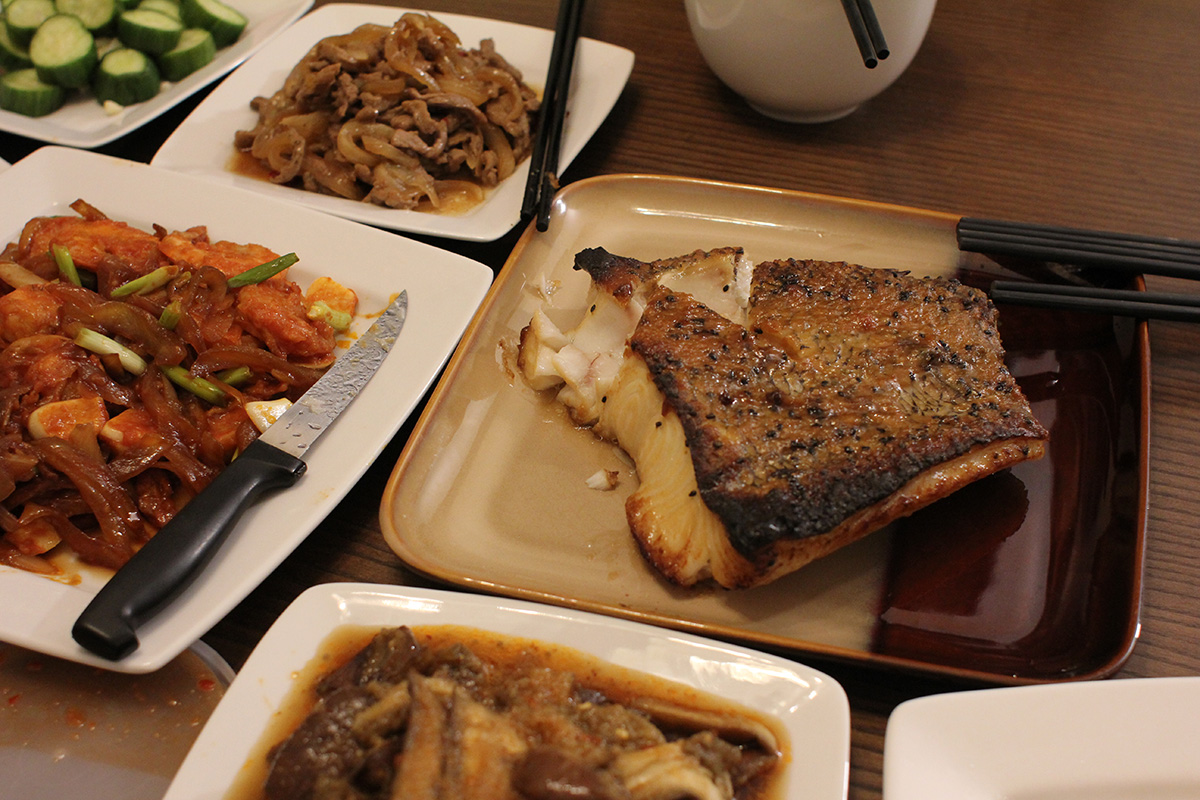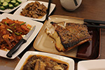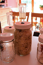 although maybe i would've liked to have gone a whole 2 weeks fermenting this second jar of sauerkraut, i opened the jar anyway on day 12 because judging from the airlock there wasn't anymore fermentation activity, at least not enough to matter whether i opened it today or 2 days from today. it tasted more sour than the first batch, and had slightly more moisture, but i was still surprised that the sauerkraut itself wasn't sitting in a pool of its own juices, as there were hardly any juices left. i filled up an empty pint jar with sauerkraut to bring to my parents' place; even after stuffing the jar, i still had 2/3 left in the quart jar, which shows how much i compressed the shredded cabbage initially.