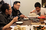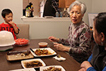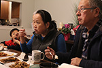 jack called yesterday, inviting us to his house for chinese dumplings. of course we were all curious to go, as none of us had been to his newton house after he bought it 3 years ago. as it wouldn't be polite to arrive empty-handed, i went to market basket in the morning to buy a box of clementines. my mother was also insisted on getting a potted flower, and it had to be orchids. MB had one small specimen, but it was more of a miniature bonsai orchid, so my mother said we'd get it elsewhere.