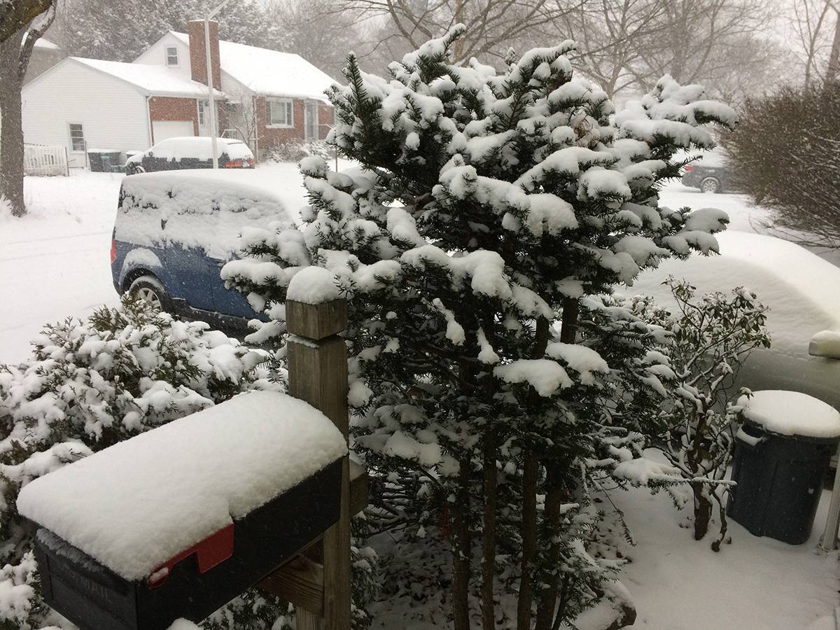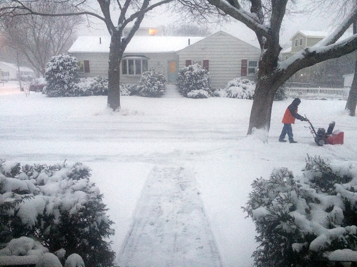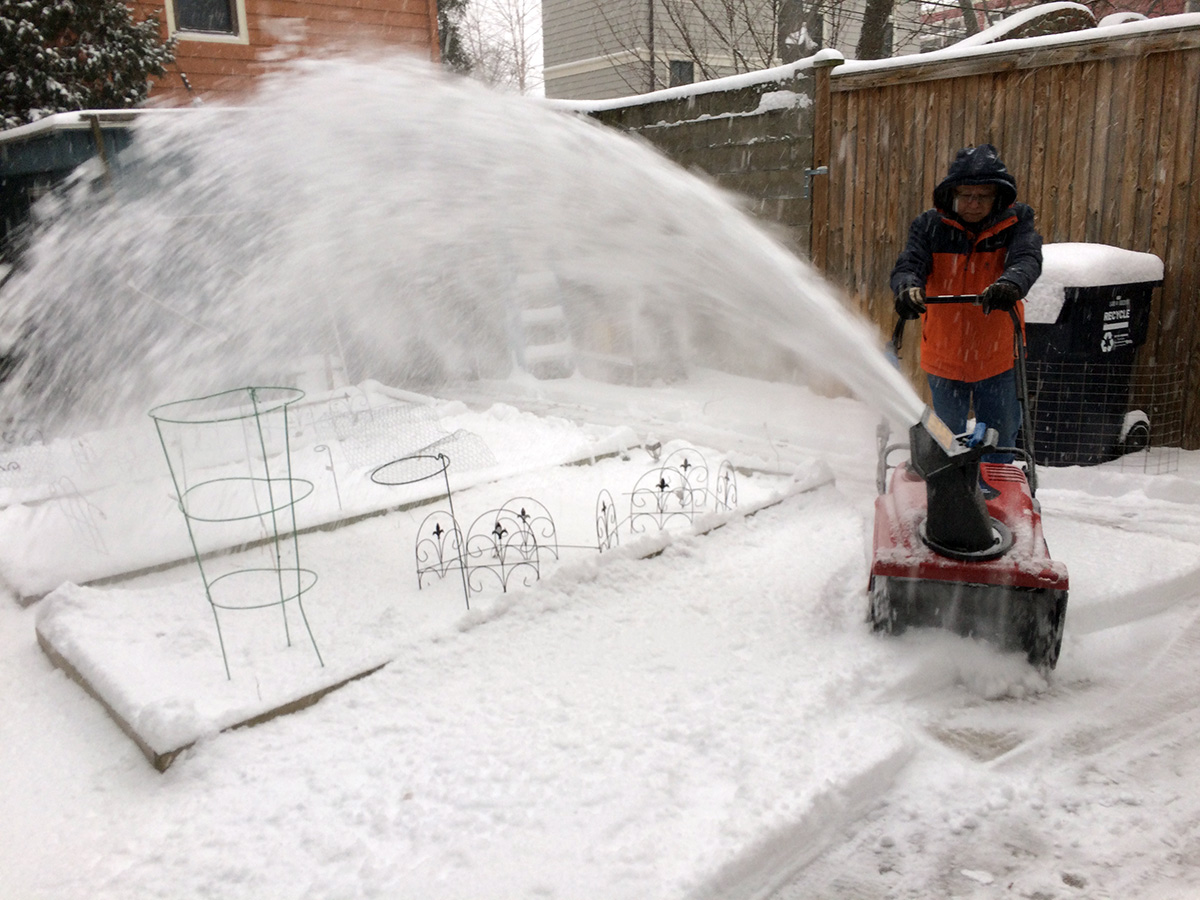 what's unusual about this snowstorm was how cold it was, with temperature in the low 20's. it felt even colder with the biting winds that blew the very light snow around. we were still making some last minute preparations, with me storing some stray items from the backyard into the garage and my father trying to start the two-stage snowblower. we didn't use it at all last winter as we didn't get very much snow, so we weren't sure if it'd even start. after several unsuccessful attempts, a neighbor walking his dog suggested we prime it a lot, which seemed to do the trick. the engine started, a smoky smelly loud affair, but the snowblower was operational.