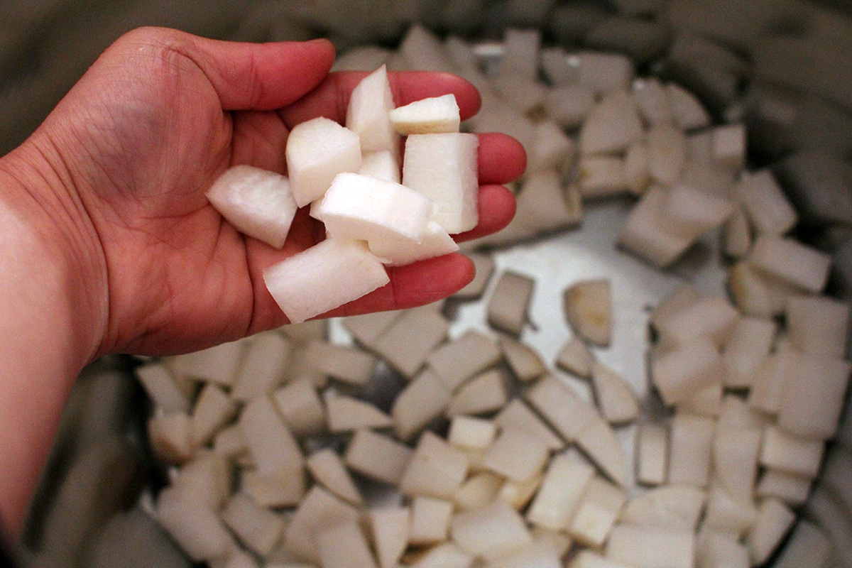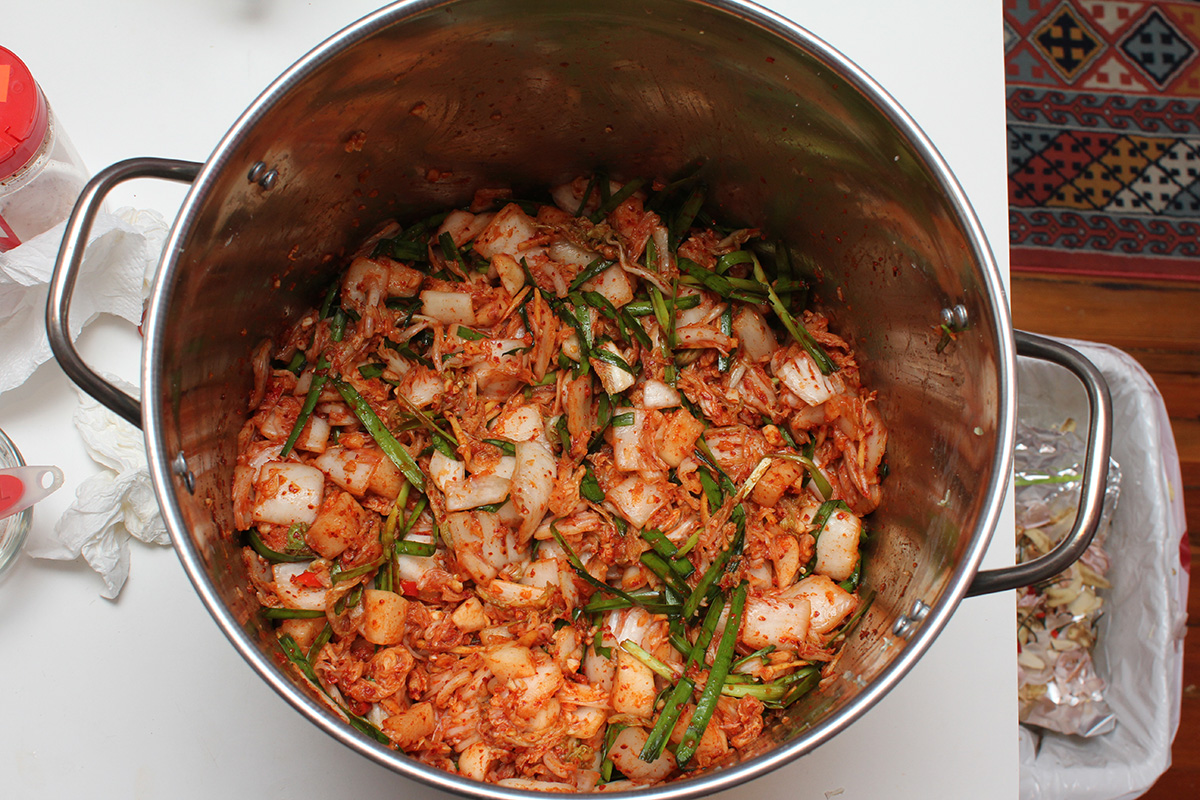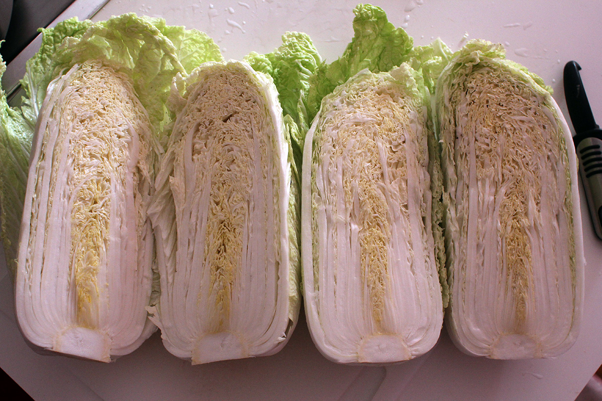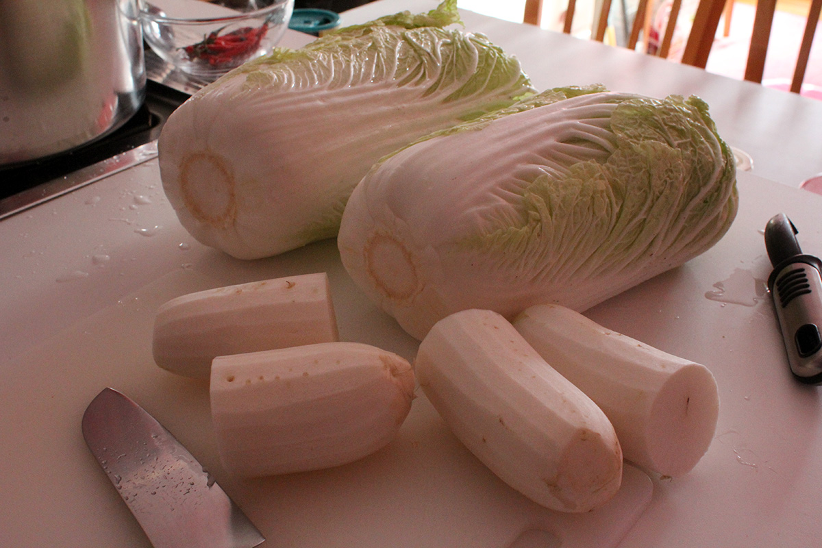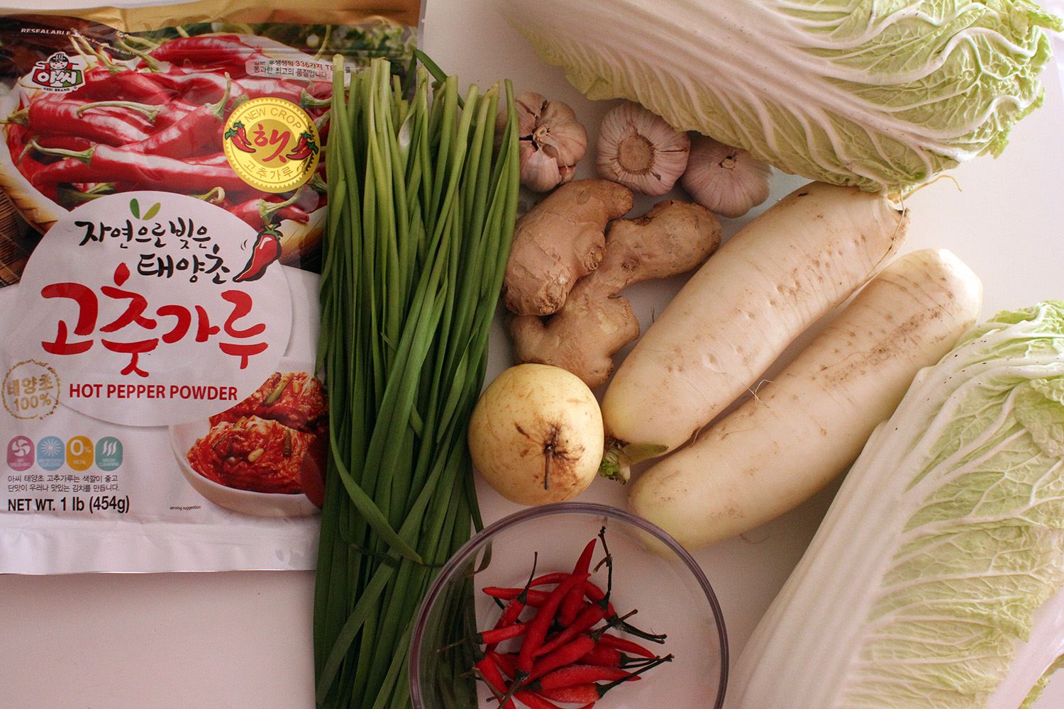 7.1 lbs. napa cabbage 2.1 lbs. daikon radish 5 tbsp fine sea salt 2 tbsp salted shrimp paste 12 tbsp red pepper powder |