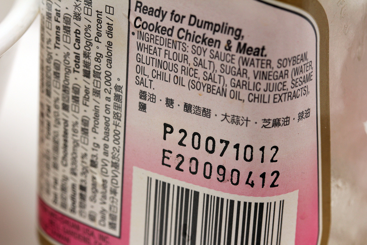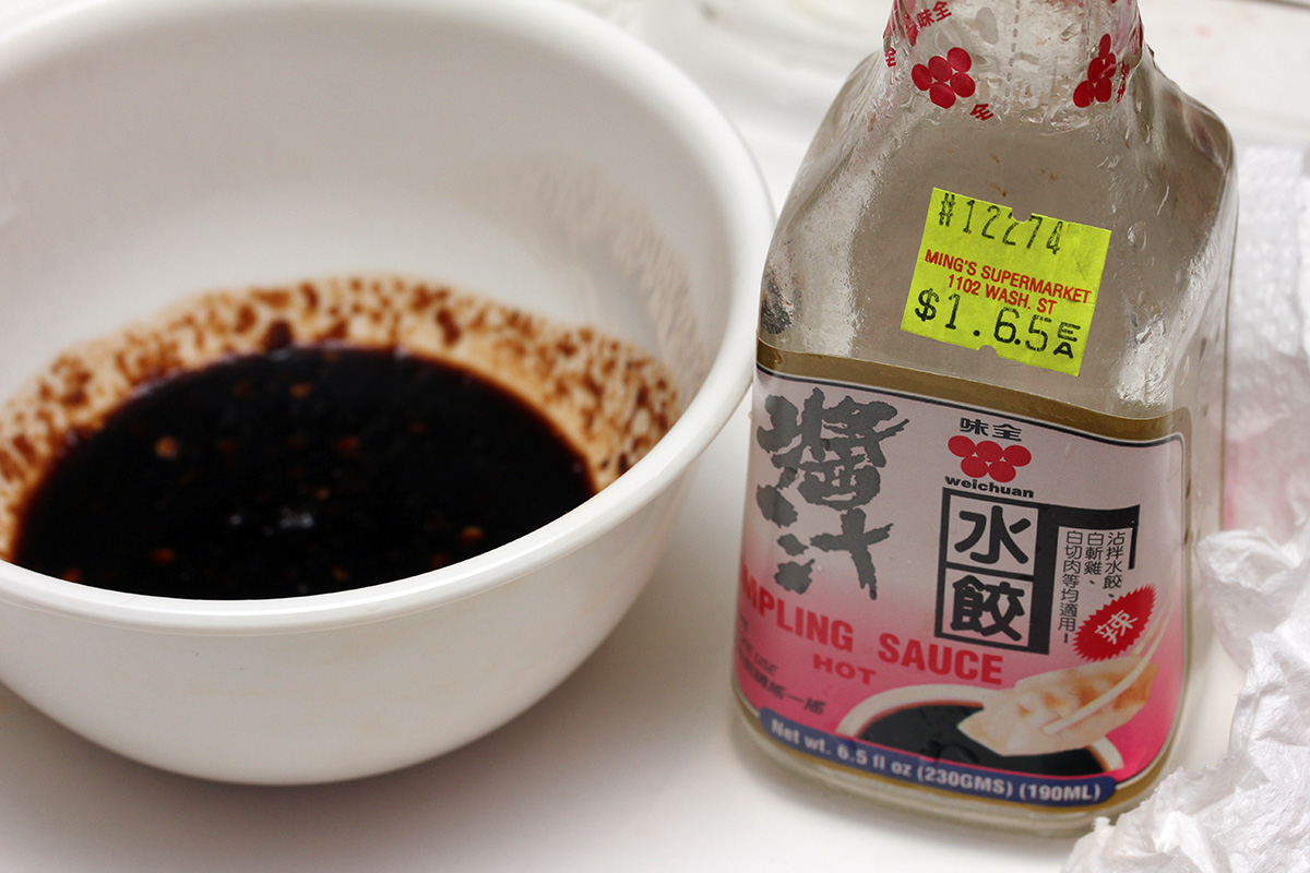 for dinner i boiled the frozen chinese dumplings. i had some dumpling sauce in the cupboard. i was surprised by how little there was, then i saw the expiration date: 2007! it must've reduced in over the decade it's been sitting in my cabinet. i was going to toss it, but figured i'd try it anyway, if anything, it'd be an even more concentrated dipping sauce, and maybe the aging improved the flavor. to the sauce i also added some vietnamese garlic chili sauce and some rice vinegar.