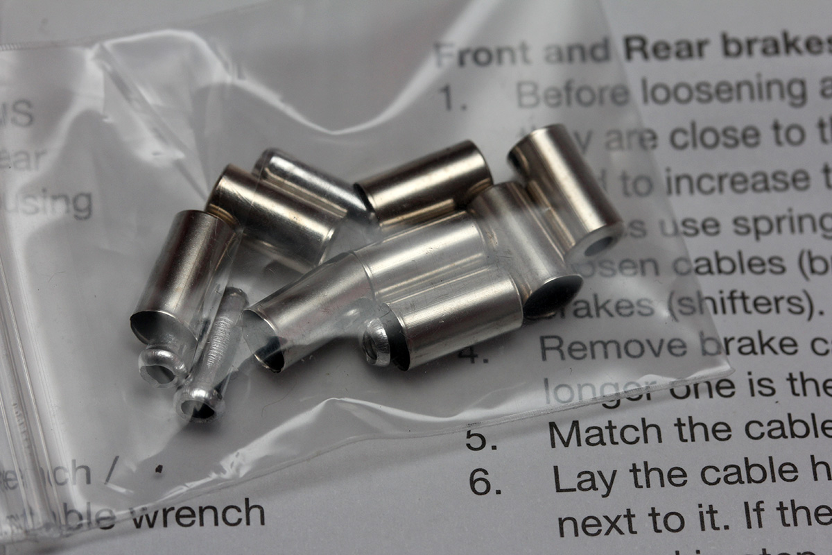 next i moved on to my trek utility bike repair. my original plan was to replace all the cables, but only the rear brake cable needs replacing, so i decided to only do that one. the cable cutter makes cutting the brake cables so easy. supposedly they can also cut the housing, but it has a tendency to totally mash the cut every time, so i don't think they're any good for that purpose. what i need is a dremel tool to smooth off the ends of the cable housing, but i will have to make do for the time being with rough cuts.
