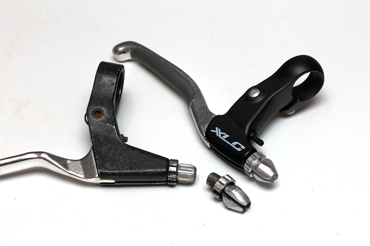 january of 2016 i had my snowy bike accident, which damaged the right brake lever, the one that controls the rear brake. i thought it was just superficial scratches, but apparently the crash also bent the adjustment screw and actually damaged the screw in such a way that i couldn't use it anymore and the cable couldn't be removed without cutting. fortunately i didn't throw away the old brake levers, and the adjustment screws on that are compatible with the brake lever.