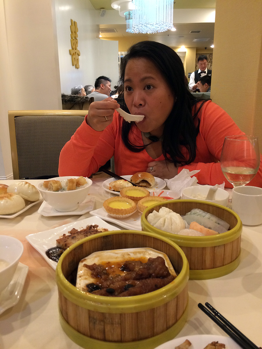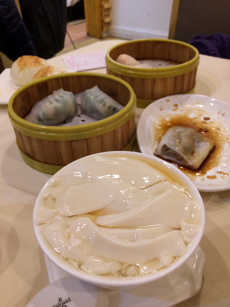 the first thing i tried was the chashaobao (cantonese cha siu bao å‰çƒ§åŒ…). it was okay, but i thought the bun itself was a little dry, and the pork filling didn't have that characteristic red coloring. as for the chicken feet, the skin and cartilage wasn't as falling-off-the-bone as the ones in chinatown. and the tripe smelled a little bleachy, weren't as tender or flavor as chinatown dim sum tripe. the dou hua tang was not as sweet, and had a noticeable sourness to it. the xiao long bao was very small, with the filling being too big to be bit-size.
