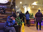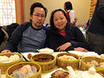 so much for early: my sister didn't arrive until 10:45am. the dim sum place we were going was ming's seafood restaurant, not the first place you'd think of for weekend dim sum. we at malden center arrived at 11:08am. it was still early enough that there were plenty of 1-hour curbside parking (later we spotted a municipal parking lot as well). it was already crowded by the time we arrived at ming's, with more people milling about in the waiting area. the attendant handing out numbers asked us if we wanted to share a table but we decided to wait for our own table. the wait wasn't very long, less than 10 minutes. my sister left briefly to move her car (she was nervous that it wasn't parked close enough to the curb) while my mother and i got seated at a table in an alcove area next to the kitchen.