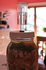 i am concerned about the rising brine level in my 2 quart curtido jar. i thought i had plenty of head room, but overnight, the cabbage juice has come up to the neck of the jar. there's about another centimeter of space before it hits the airlock spout. all this liquid is a good thing because i was worried that there wasn't enough fluid coverage and that my cabbage leaf block would eventually get moldy. but now it seems i have too much. i wonder if i should open the jar and press the solids back down, maybe letting some of that trapped carbon dioxide escape. but as a rule, never open the fermenting jar, especially in the first few days, and it's only day 2.