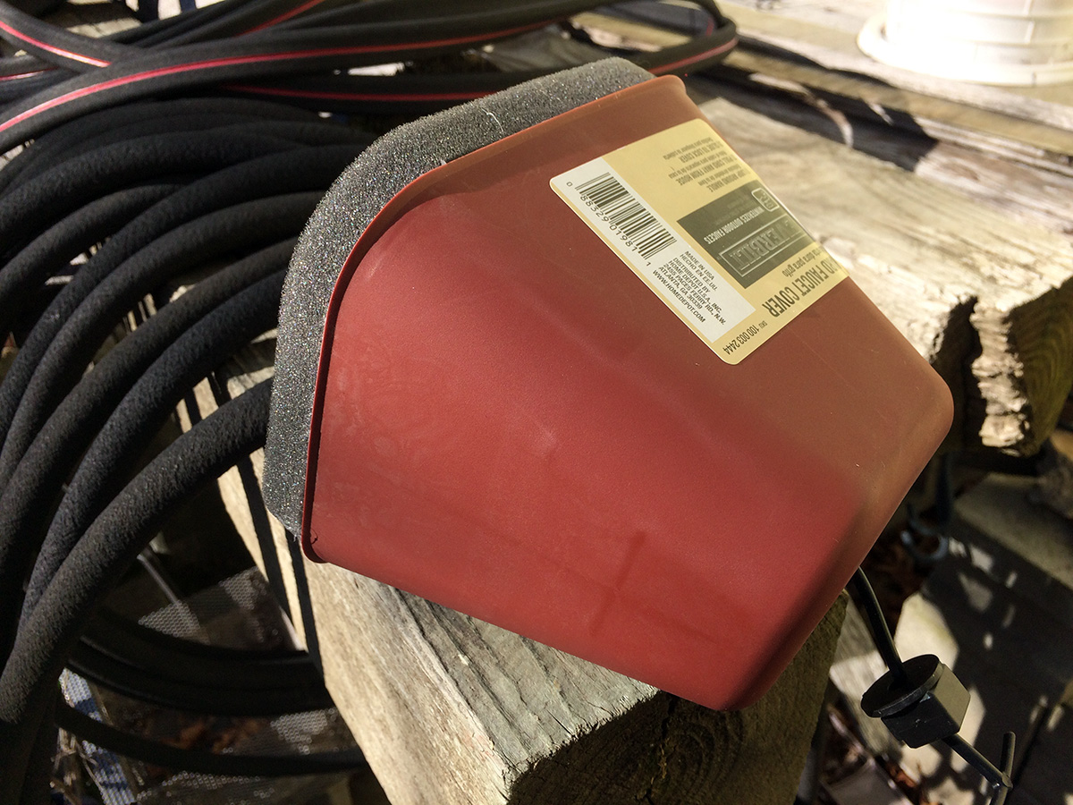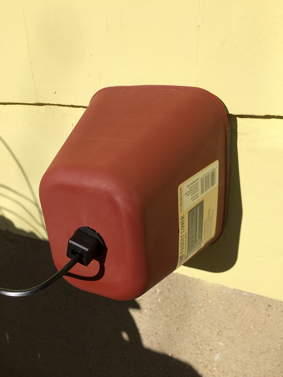 i was in the backyard refilling the globe seed feeder and attaching the hard faucet cover i bought yesterday from the everett home depot.