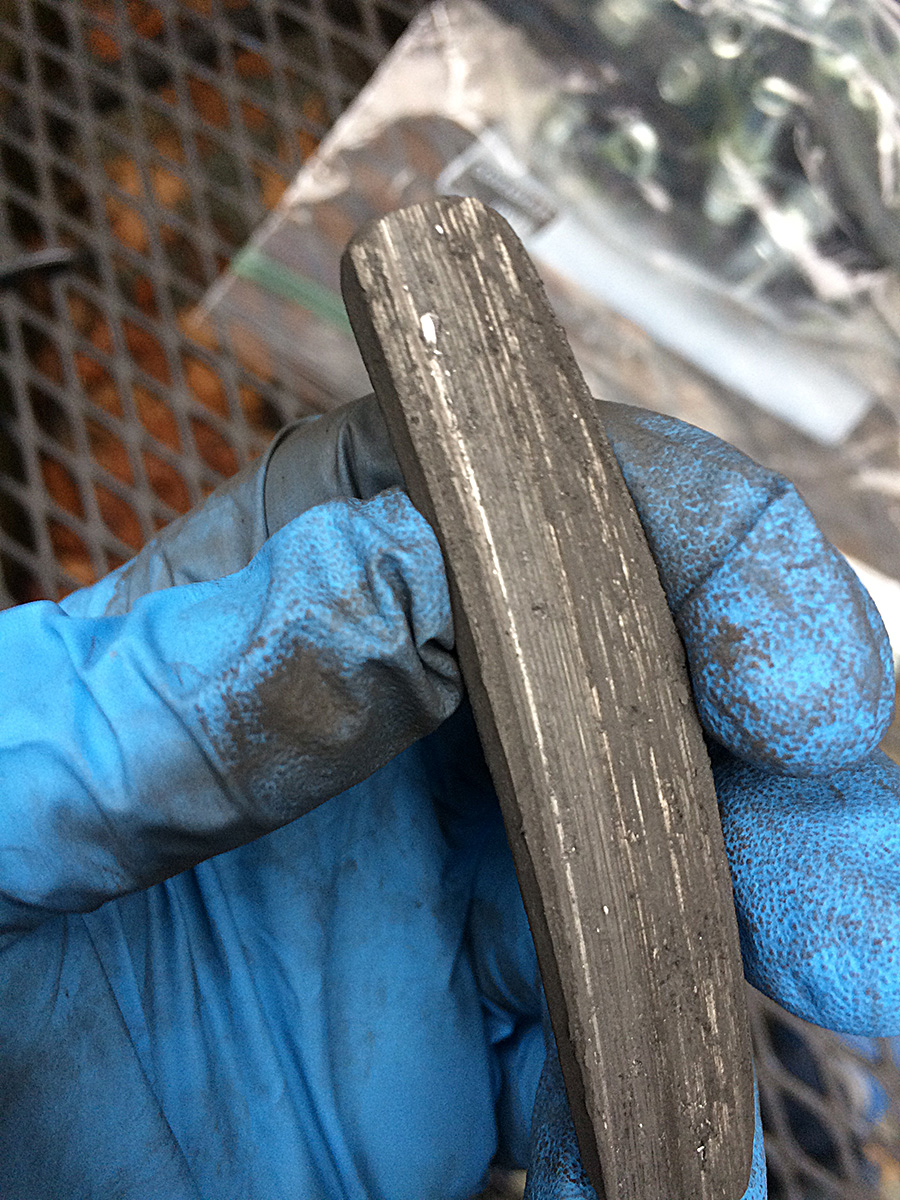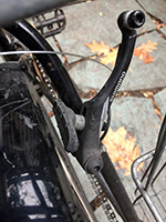 i finally pushed out my trek utility from the kitchen so i could work on it outside (and not dirty up the house). i already knew the rear brake pads needed to be replaced, but i checked anyway in case they were still good. they were worn down pretty badly. these pads seem to be original stock, the ones that came with the v-brakes when i had them replaced. these old worn pads were from a batch i bought back in 2011, so i wonder if it's been that long since i replaced them. fortunately i had plenty of brake pads, from that one time i bought them in bulk from ebay. these bulk pads from china are cheap, but they're not that good, and get worn out faster. plus they reek of rubber, so badly that i need to keep them double-bagged.