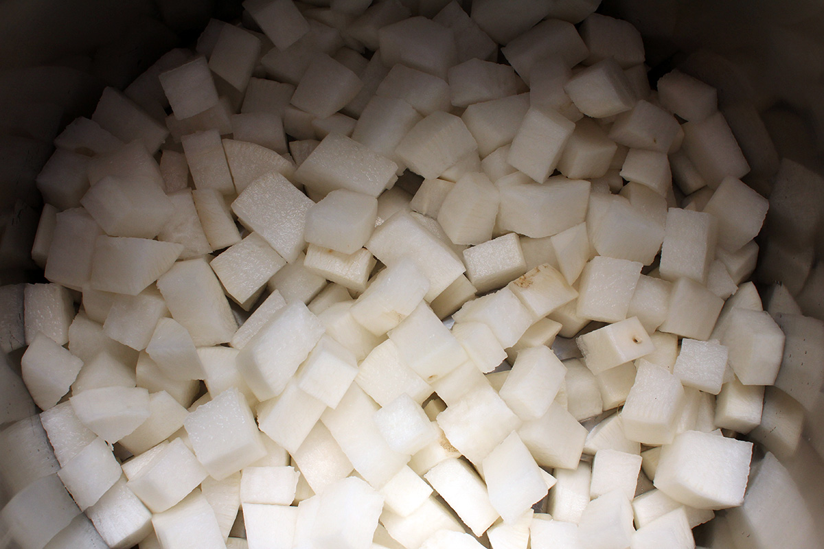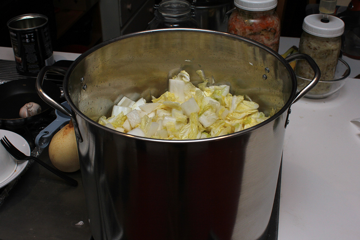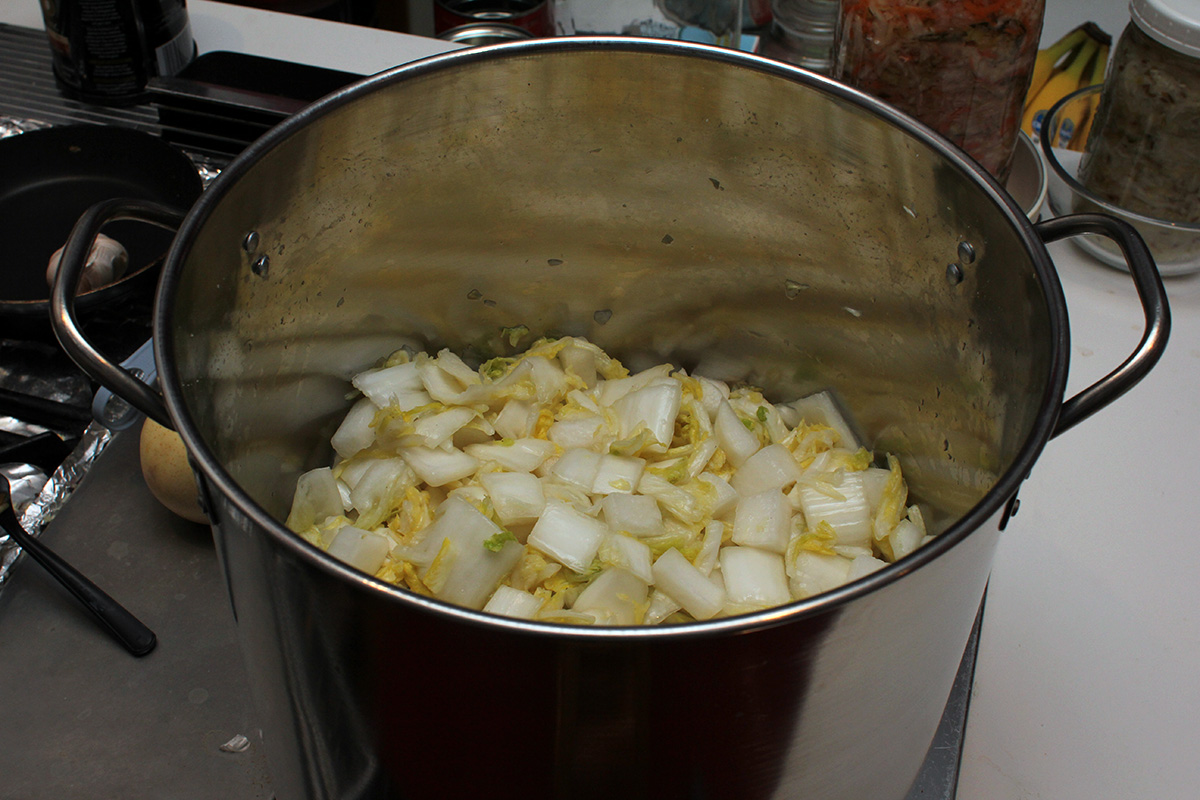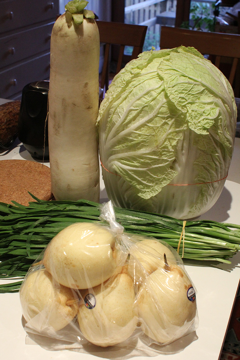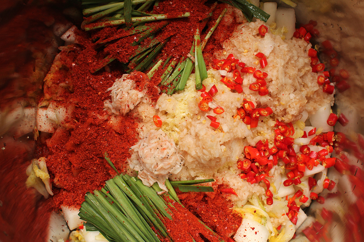 8.7 lbs. napa cabbage 3.5 lbs. daikon radish 6.5 tbsp fine sea salt 2 tbsp salted shrimp paste 16 tbsp red pepper powder |