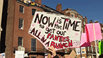 the march started at 11am, but bruce and i decided we'd leave at 11am, as the first hour or so was all speakers and performances, and we weren't particularly interested in either. i met jack and bruce at their place and together we walked down to porter square station. already we were seeing protestors, groups of people wearing pink pussyhats, or carrying signs. strange thing was many were all going in the opposite direction of the station, so i wonder if there was a local protest happening in union square somerville. the weather was especially nice, sun and blue sky, with temperature in the upper 40's and reaching upper 60's by midday.
