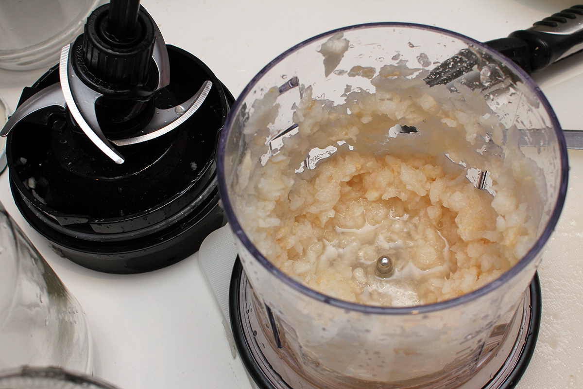 0.20 lbs. ginger, processed 3 heads of garlic, processed 2 asian pear, processed 20 thai hot peppers, chopped 0.37 lbs. garlic chives, chopped |