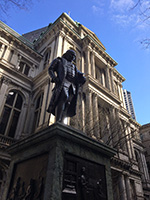 back down into boston common we went by frog pond to see the people ice skating. karen told me she knows how to skate (which i found surprising, since i don't think ice when i think of mexico), but still an amateur at best. at the granary burial ground i showed her some famous graves (paul revere, samuel adams, john hancock). then it was old city hall (now a steakhouse with a benjamin franklin statue outside) followed by the old state house.