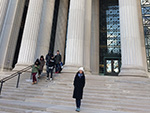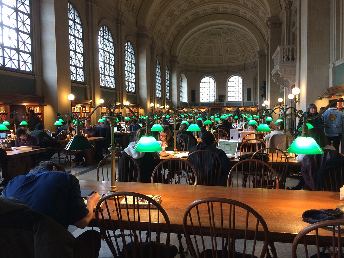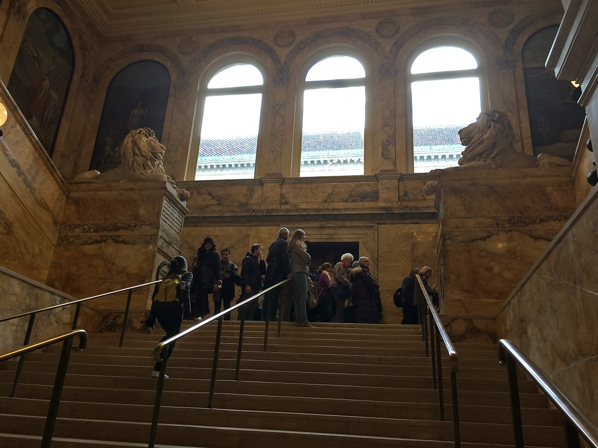 i wanted to show karen inside the boston public library but there were so many protesters on the dartmouth street steps of the library (copley square facing) that we went in from the side entrance on boylston street instead.