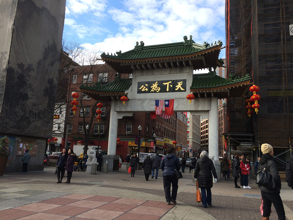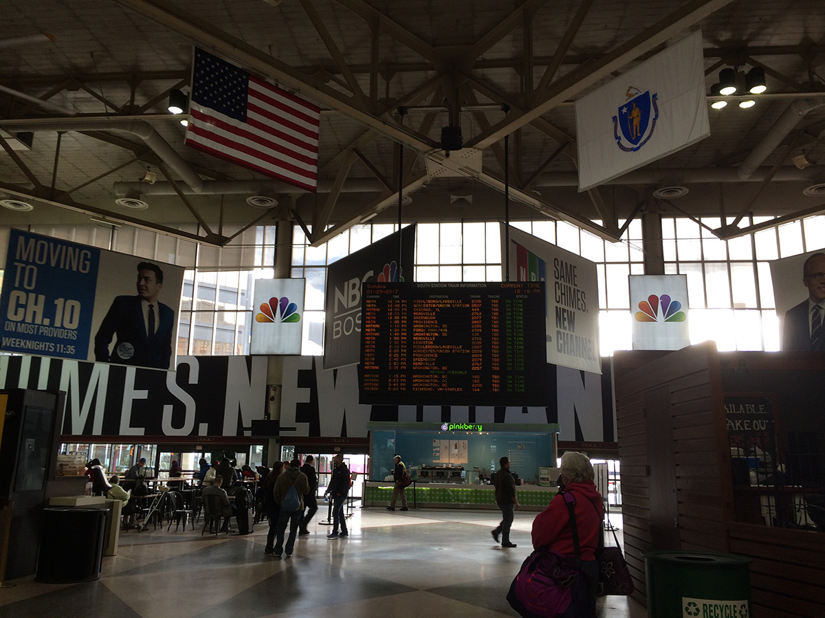 we followed the greenway towards chinatown. karen recognized south station, as this was where she and her companions arrived on the train from new york city on her previous trip to boston. she was interested in finding out the schedule and cost for a possible future trip to montreal, so we went to the south station bus depot to get some info. greyhound has a one-way ticket to montreal for around $85 (on a weekday). from there it was a straight line down beach street to chinatown.