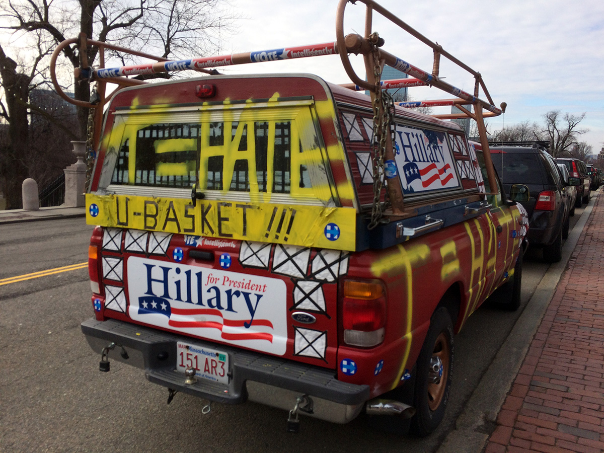 however, there were some kinks. i always like to take tourists to the boston public library, but they don't open until 1pm on sundays. in order to see it, i'd have to schedule that at the end of the tour. so for today, i'd run my tour in reverse, leaving from porter square, and taking the subway to park street first. another reason to schedule the library in the afternoon: there was a muslim travel ban protest happening at copley square at 1pm. that's not something you see everyday (although more common nowadays given the new administration's proclivity to offend moderates and liberals, of which there are a lot of in massachusetts), and i figured karen would get a kick out of it.