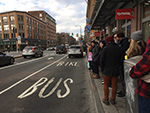 due to the protest, the line for the no.1 bus was longer than usual. when the first bus came, there wasn't enough room for bus. after a long wait the 2nd bus arrived, but due to the fact that some transmit employees parked their cars in the bus lane, the bus had to park behind us, so all the people in the back of the line got on the bus first until there wasn't anymore room for us. although we could've just taken the green line from hynes convention center, i wanted to ride the no.1 bus because it was more scenic, going across the mass ave bridge and passing MIT and central square. so i decided we should walk across the mass ave bridge to MIT, then cut through MIT to kendall station and taking the red line to harvard square.