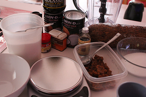 3 lbs. cassava (yuca) 2 cups brown sugar (2 cups white sugar, 2 tbsp molasses) 2 cans (14 oz.) coconut milk 1.5 tbsp vanilla extract |