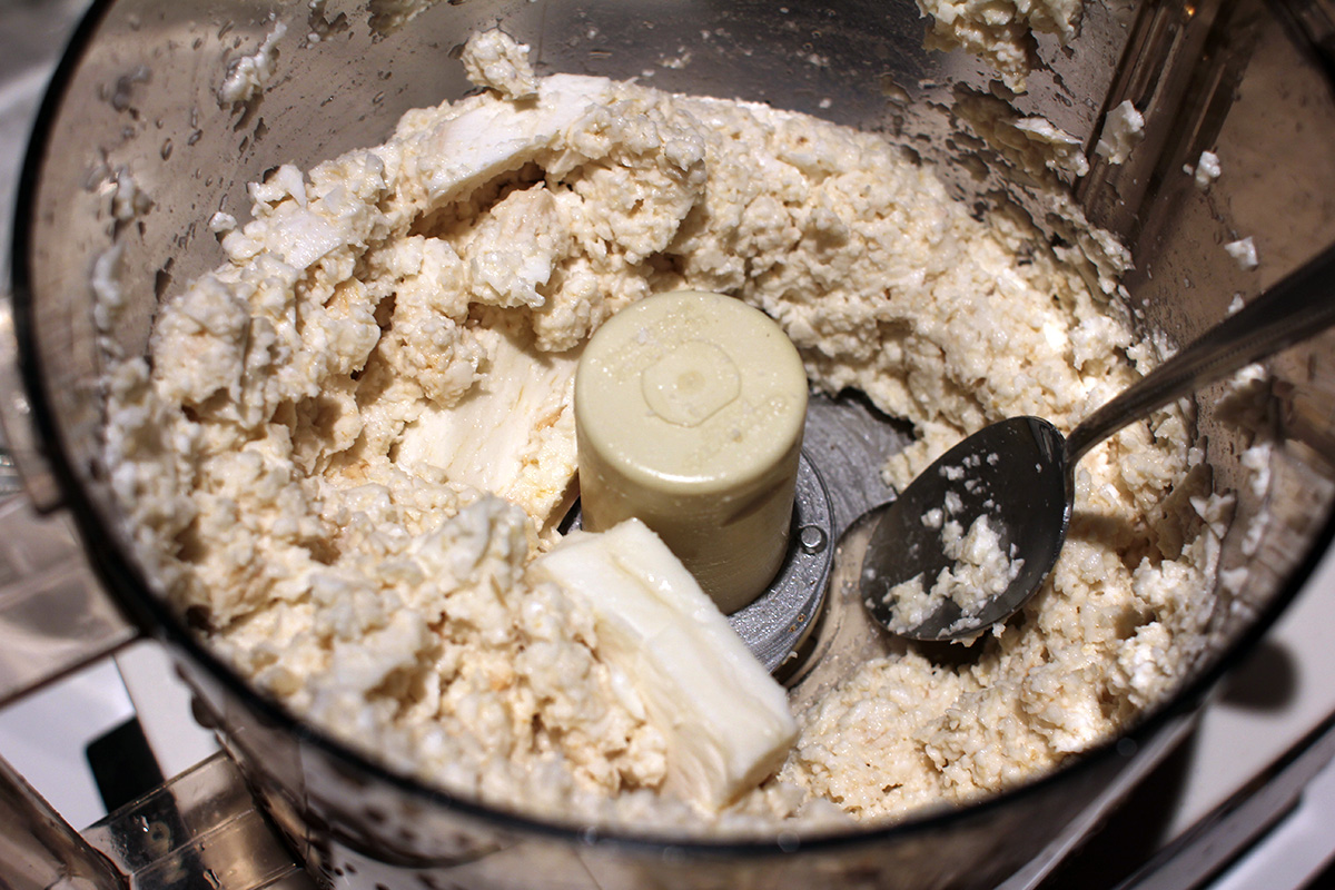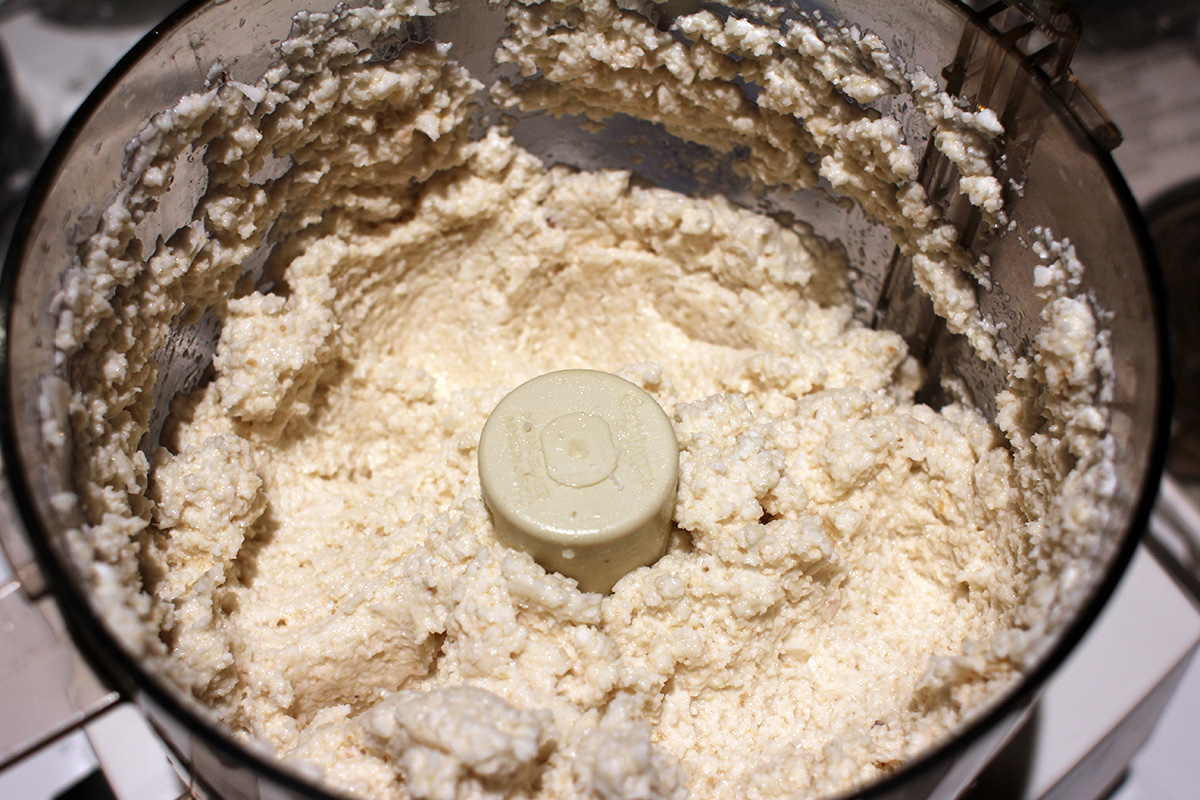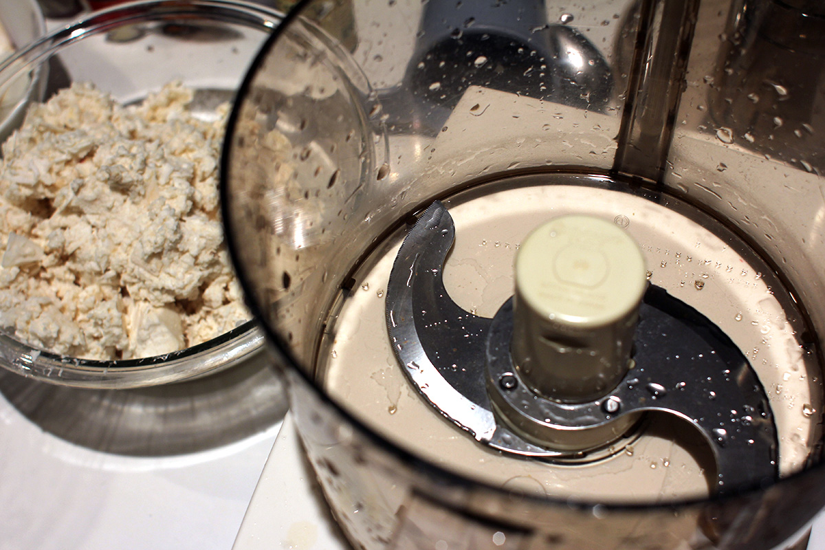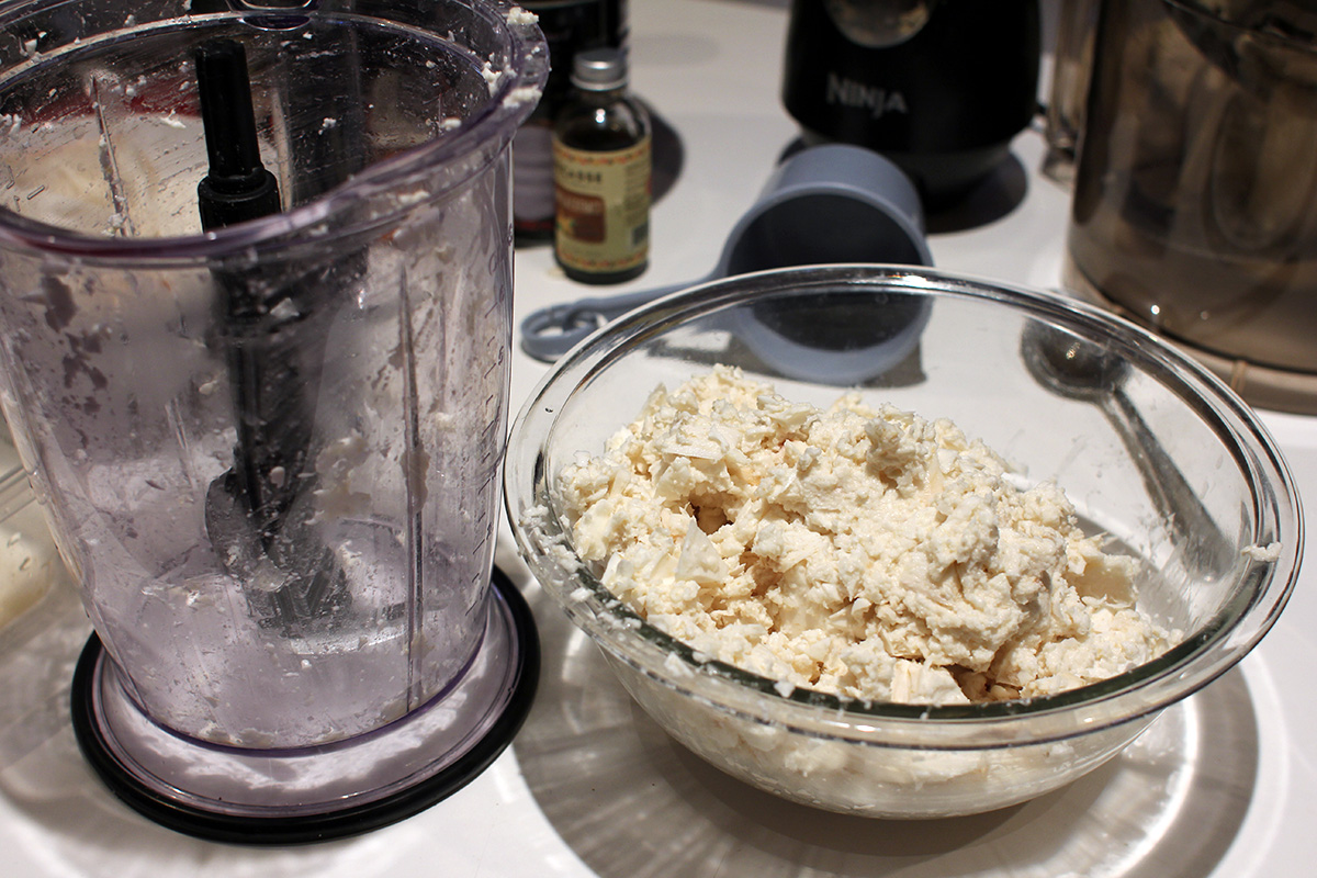 the cuisinart made quick work of the cassava. large pieces of cassava could still get caught up in an area where it wouldn't get chopped, but not nearly as badly as the ninja processor. i ended up chopping some of the bigger pieces in the ninja first before dumping the chopped bits into the cuisinart. i found that i ran the cuisinart long enough however, eventually it would reduce any large cassava pieces. the final processed cassava had the consistency of ricotta cheese. there was no unpleasant smells, and if anything, there seemed to be a faint sweet aroma. i was tempted to try some raw and i did lick a little bit but quickly rinsed out my tongue. it tasted like a raw starchy tuber, nothing too special.
