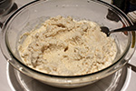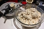 making cassava cake involves grating the cassava, which i heard is very labor intensive and typically takes hours, so the recipe is a real labor of love. all the recipes i found just sort of casually gloss over the grating (some recipes just use pre-grated cassava) which is a big step. but it's much easier to just mash the cassava in a food processor, which was what i decided to do. i used my ninja blender/processor but i discovered right away that wasn't going to work because the blades didn't reach the edge of the container so large chunks of cassava would collect there and not get chopped. the problem was i was processing dry ingredients, which don't fall back down to center to get chopped. i even tried to blend it 2-3 times, but it just wasn't working. i'd have to use my industrial-strength cuisinart food processor.