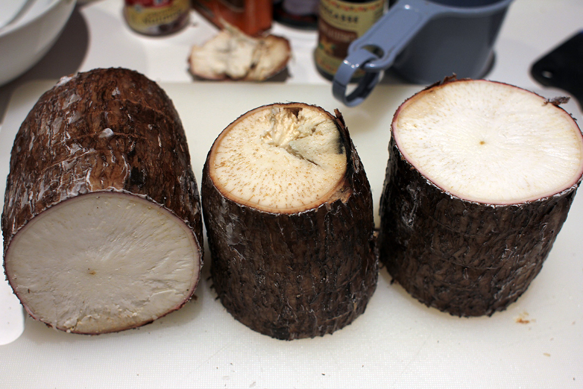 today would be the day where i finally use up that cassava i bought many weeks ago. i noticed there was some softness at the tip, which is probably not a good thing, so the sooner i use it the better.