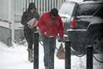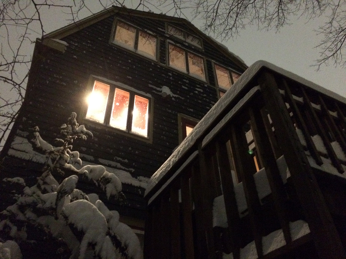 there was enough accumulation that at 3pm i went outside to do the first round of shoveling. fine ice crystals were swirling everywhere as i cleared the front sidewalk. when i tried to get back in the house, i couldn't turn the lock for some reason (frozen?) and had to knock on the back door to get karen's attention so she could let me back inside. how embarrassing.