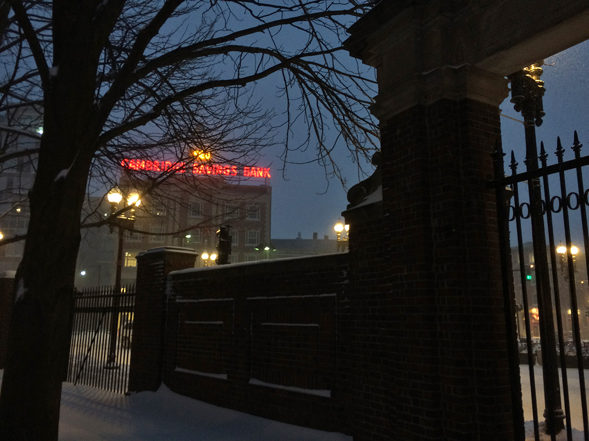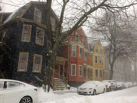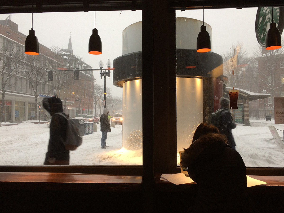 my living room was the storm watch command center, as i kept my eyes glued to the blizzard that was relentlessly buffeting cambridge. the snowstorm was interesting to karen (who didn't have to go to work today) not so much in the novelty of it, since she's lived in montreal before and they get way more snow and cold weather, but more like a sense of nostalgia. still, they never get blizzards like these in mexico (today's high in merida was 89°F).