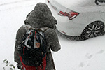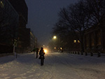 we walked in the street since much of the sidewalks weren't plowed yet. of the few pedestrians that were out, some of them did the same thing as well. i repeatedly looked behind us to make sure there weren't any cars coming. there weren't many vehicles, most were snow plows, and of the few cars that were on the road, most of them kept to a safe and slow speed.