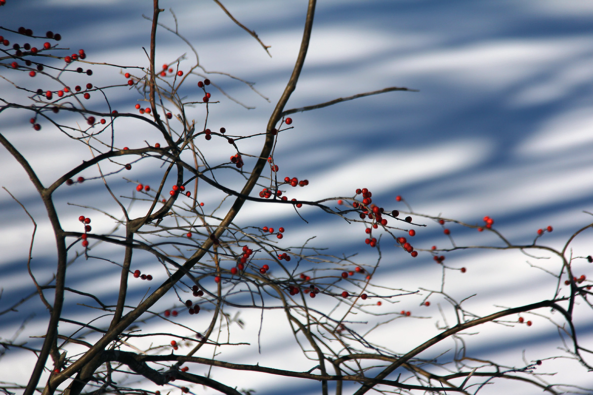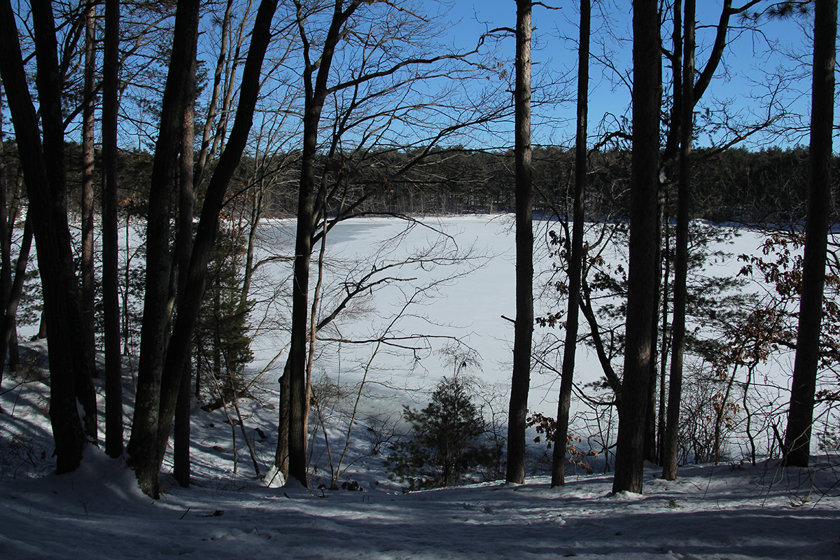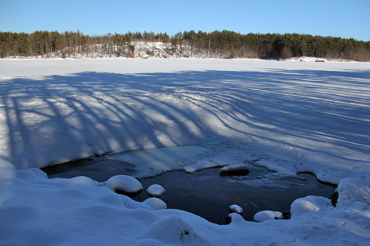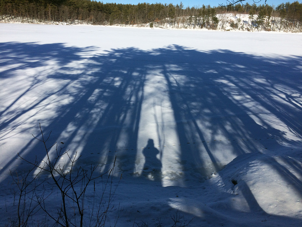 i went with my sister to winchester fells today. the best time to go would've been on monday, the day after our sunday snowstorm, with all the trees still covered in snow. but it would've been hard to walk, as the trails were probably all still buried. i came 2 winters ago as well around the same time. the fells get a good deal of traffic even during the winter, and i was surprised that most of the trails were already exposed from all the people walking on them, compacting the snow.