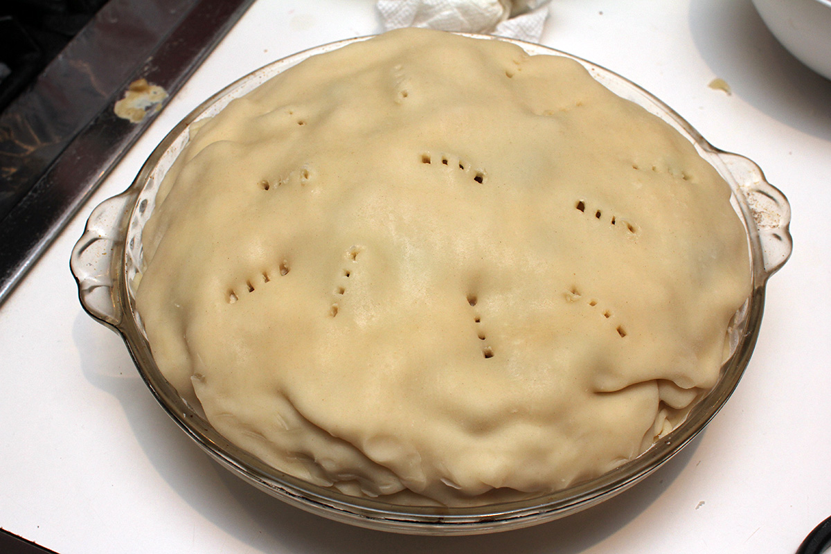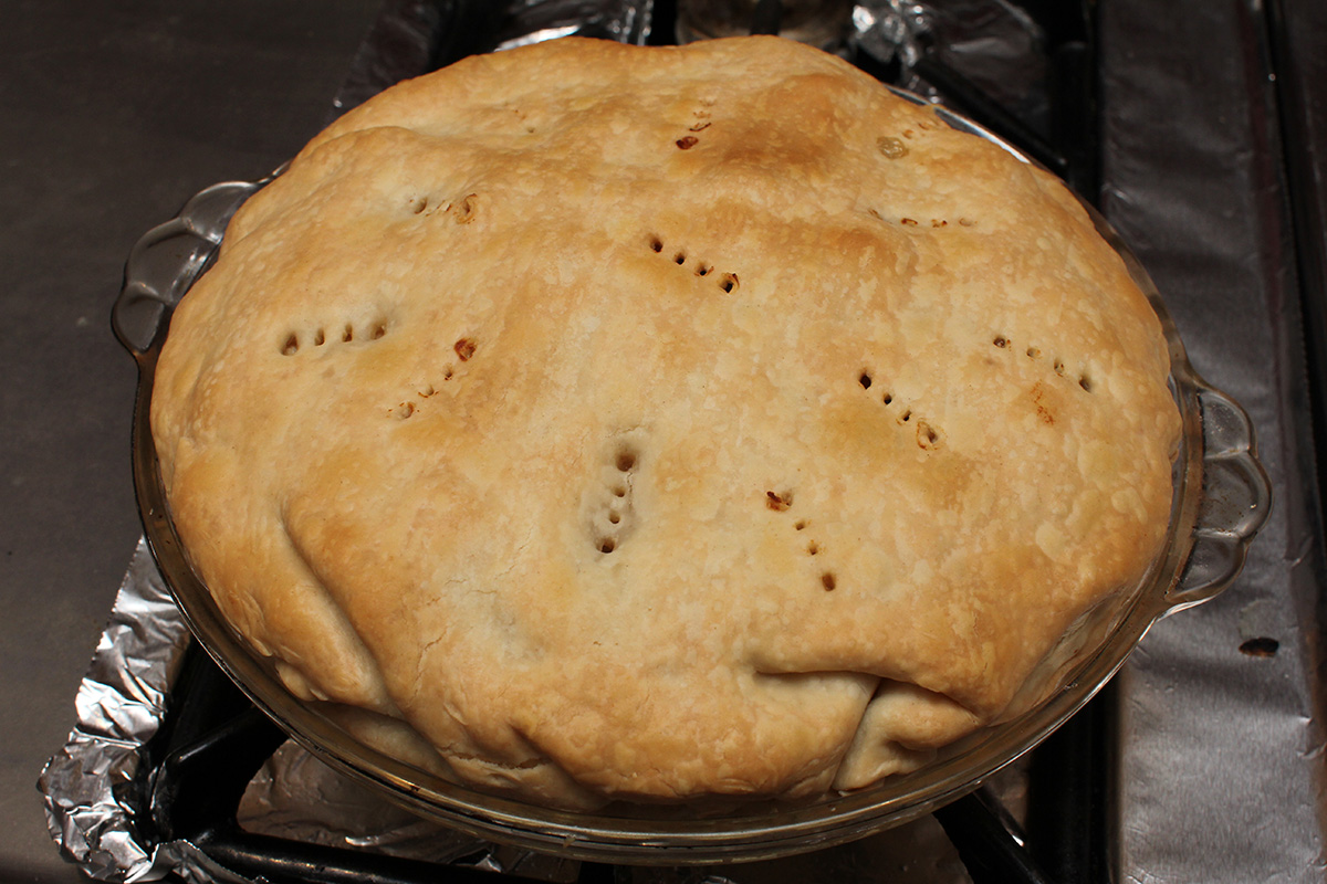 1 can chicken broth 1/3 cup of flour 1/2 cup milk 1/2 tsp salt (forgot to add) ground pepper 2 ready made pie crusts |