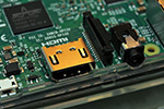 the new pi3 (henceforth known as pi3v2) looks nearly identical to my first pi3 (pi3v1), saving for a piece of high temperature tape on the HDMI port (pi3v1) and some markings on the ethernet and USB ports (pi3v2). i placed the new pi3 in a spare case i happened to have. i also had a set of spare miniature heatsinks, but i wanted to wait and make sure i can power up this pi3 before attaching them. unfortunately i don't have a spare microSDHC memory card, so i can't use the pi3v2 until i order one.